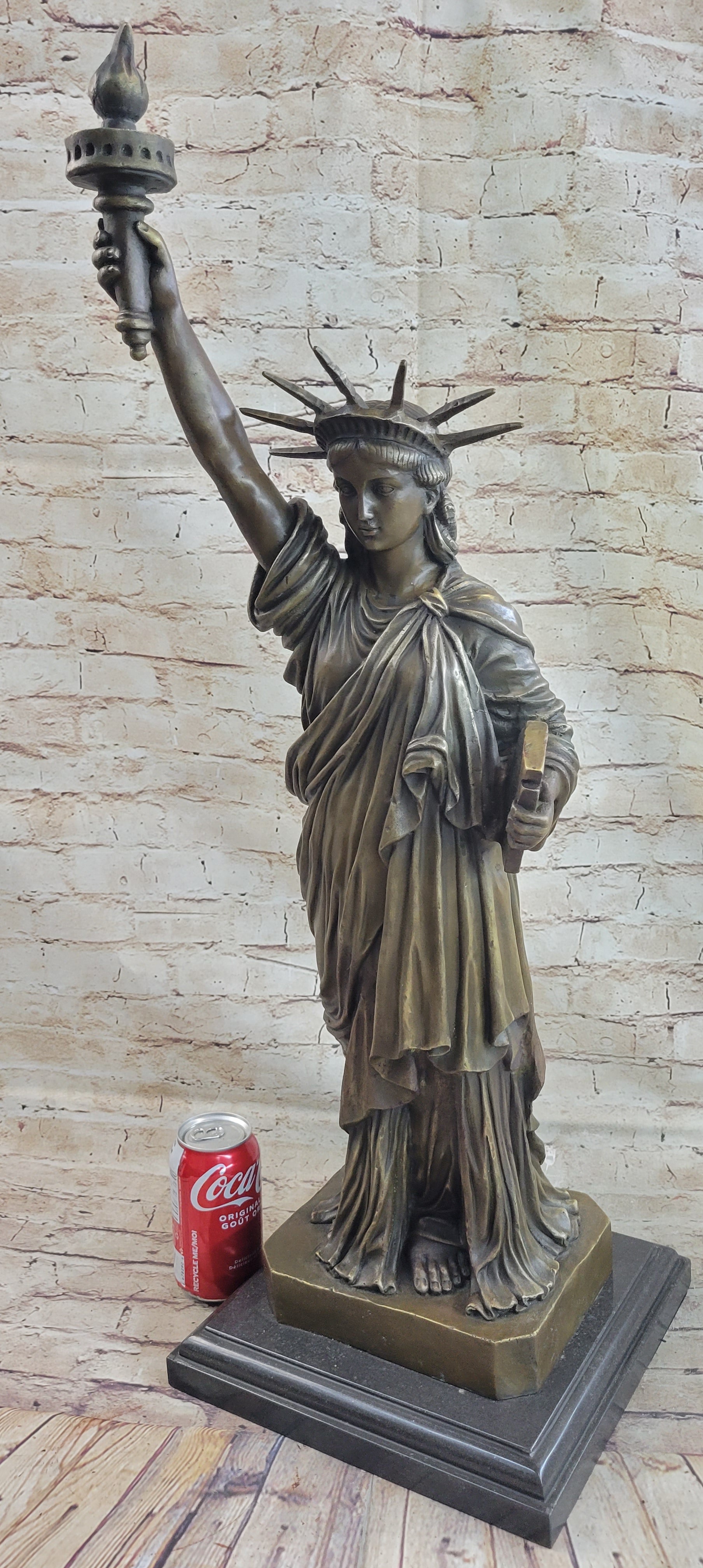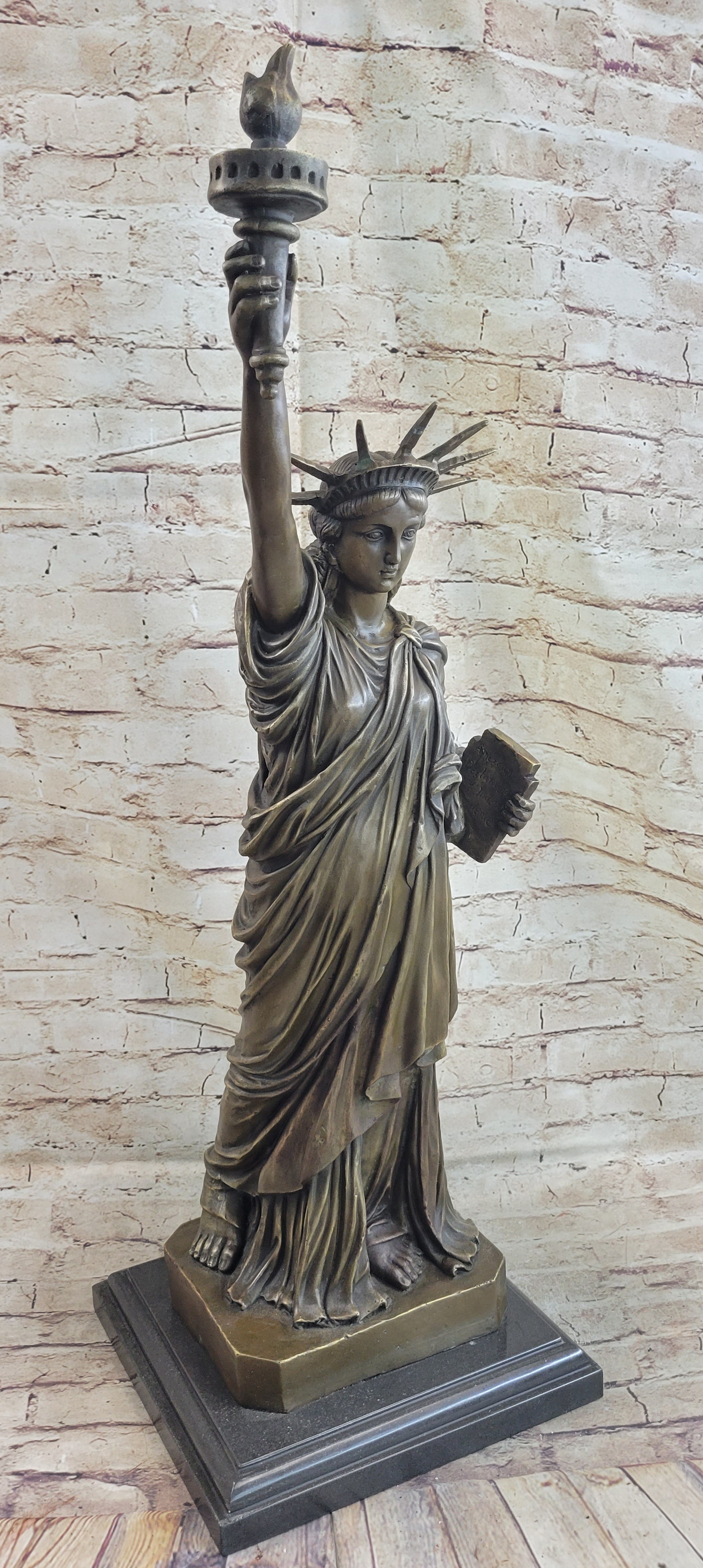 Statue of Liberty NYC Bronze Sculpture Statue Figure Replica on Marble Base