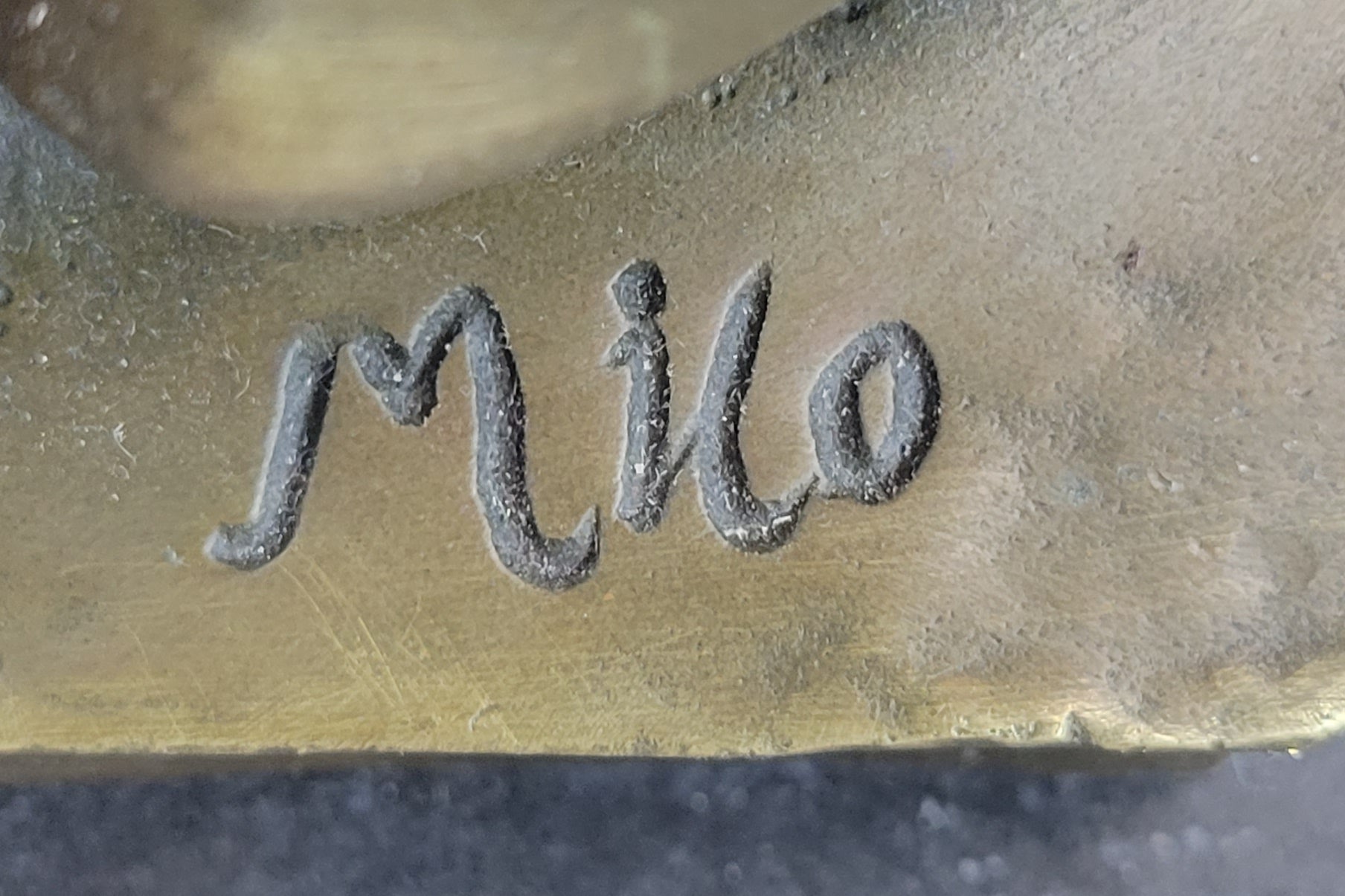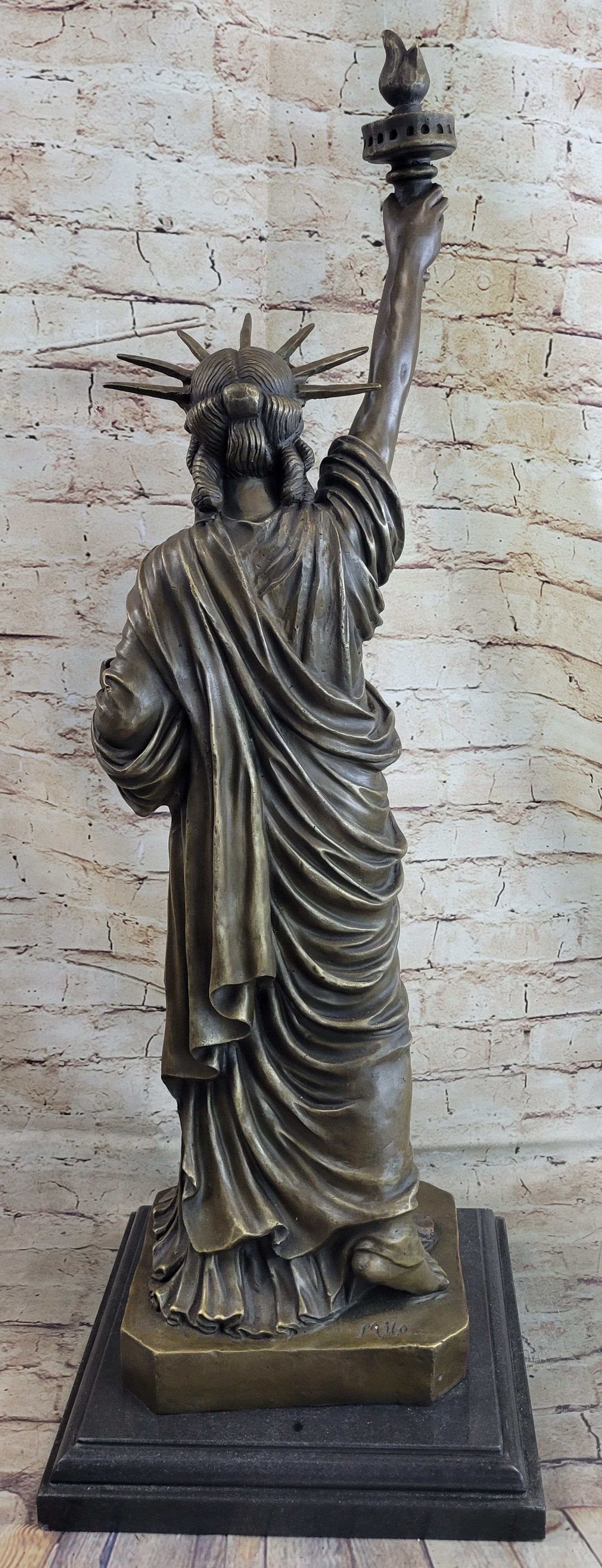 Mounted upon a sleek black marble base, this sculpture stands as a testament to the enduring ideals that the Statue of Liberty represents. The artist's signature, Milo, affirms its authenticity and the care put into its creation. Whether as a patriotic homage or a symbol of freedom's enduring strength, this bronze rendition of the Statue of Liberty holds a timeless allure that resonates with people around the world.Bronze Dimensions with Marble Base: Height 32" X Width 10"
