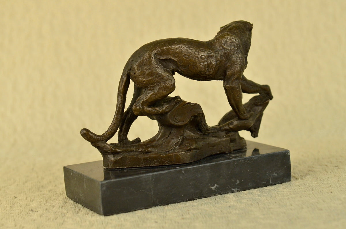 This Cheetah Bronze Sculpture by Barye impeccably captures the raw power and sheer speed of this magnificent animal. This statue exquisitely pays tribute to the sleek, graceful movement of this wild cat. Proudly display this statue in your home to show your love for the marvelous cheetah. This is limited to an edition of only 500 pieces and is made in the Europe. The original piece was sculpted partially during an event for Cheetah rescue.Original or Reproduction: Reproduction
