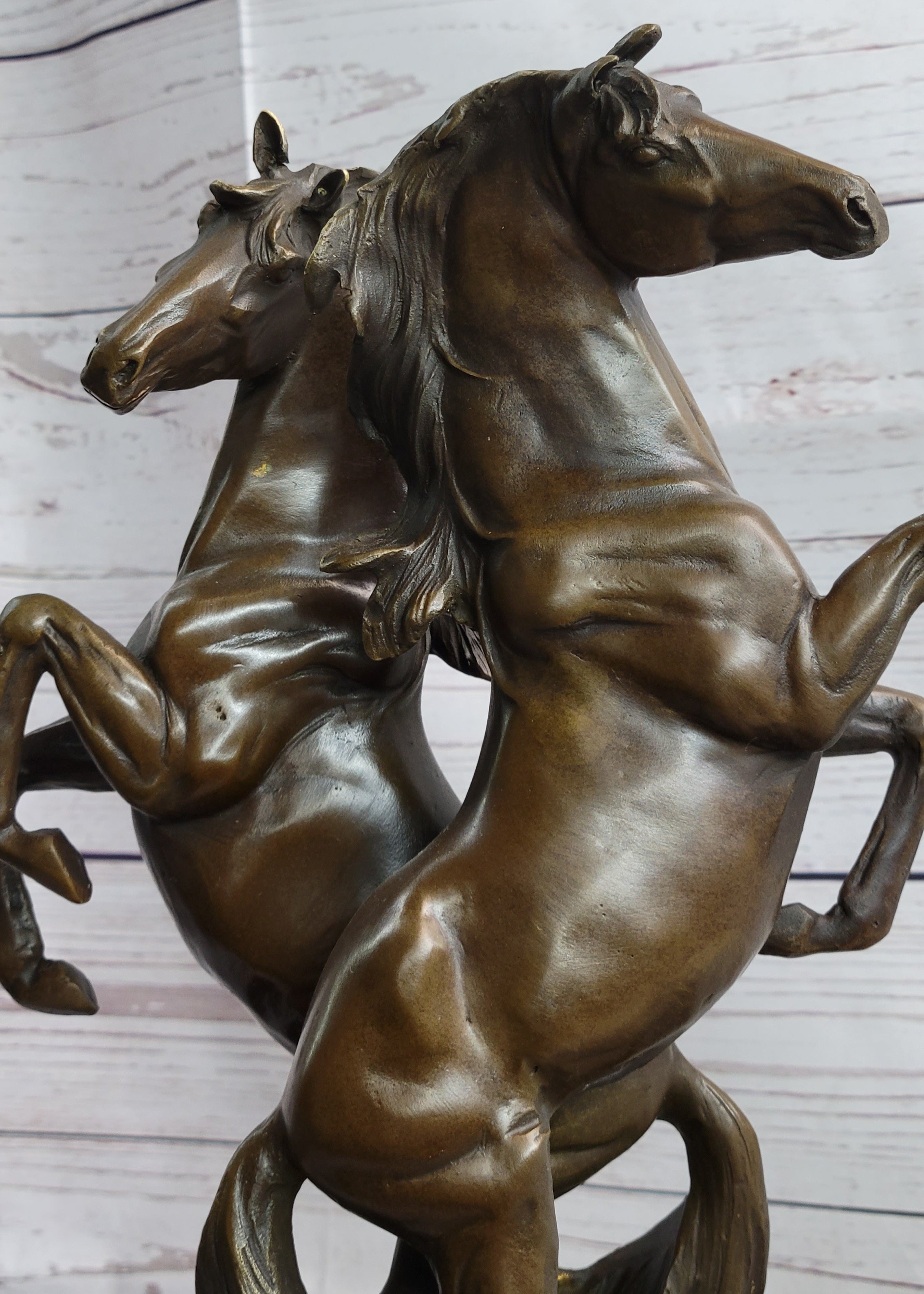 Two Rearing Stallions Horses Bronze Sculpture Statue Horse Lover Decor Signed Art on Marble Base