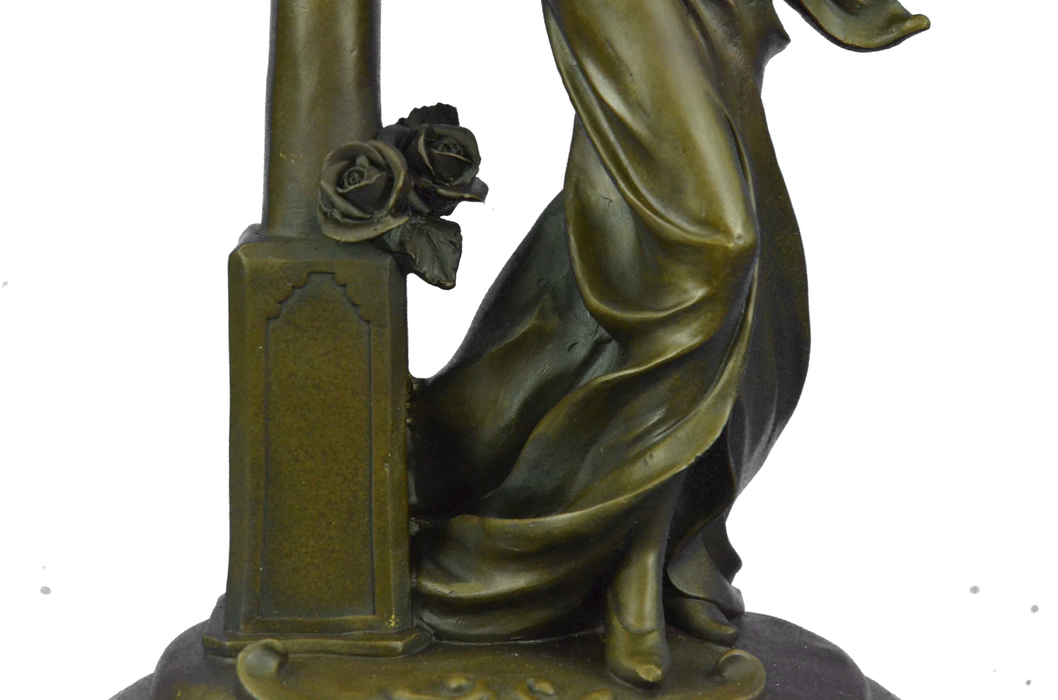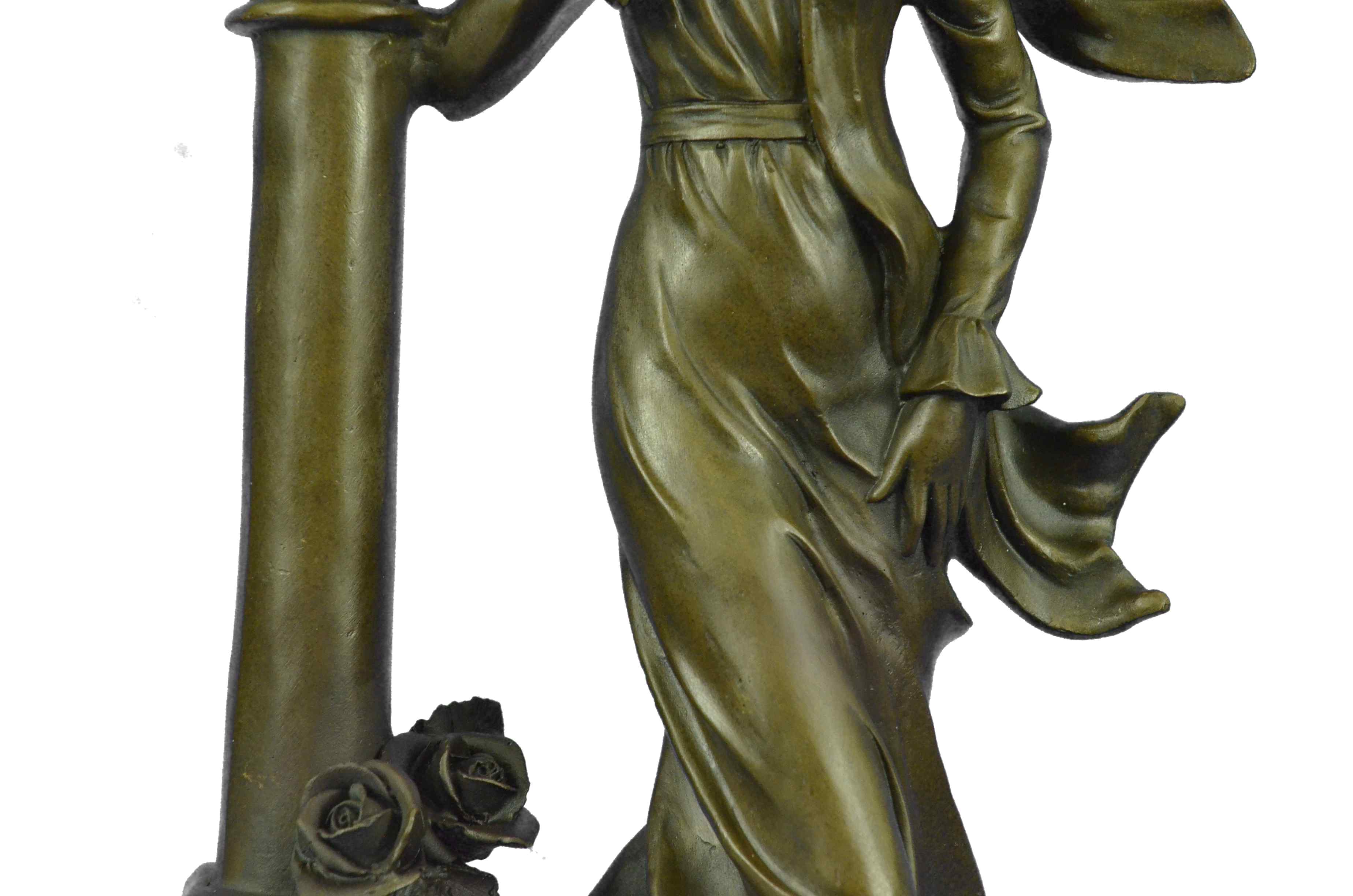 Condition: This sculpture is in perfect condition. Bronze Dimensions with Marble Base:Height 17" x Width 8" Marble Dimensions: Diameter 8". Height without base: 16" Weight : 18 LBS Inventory : 84YRD133610148
