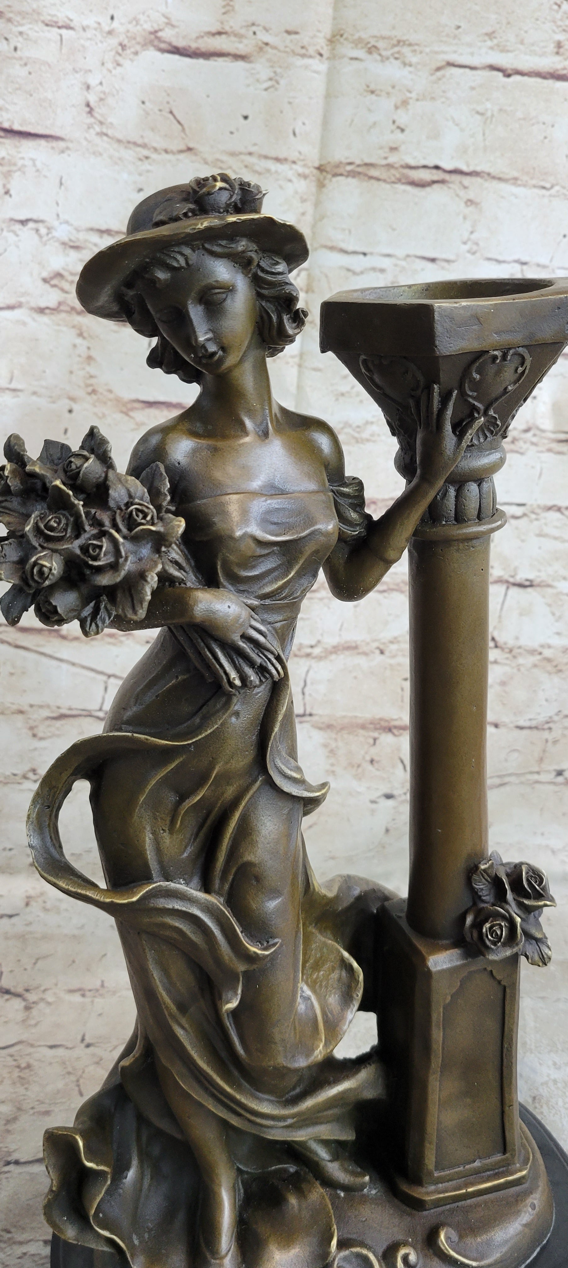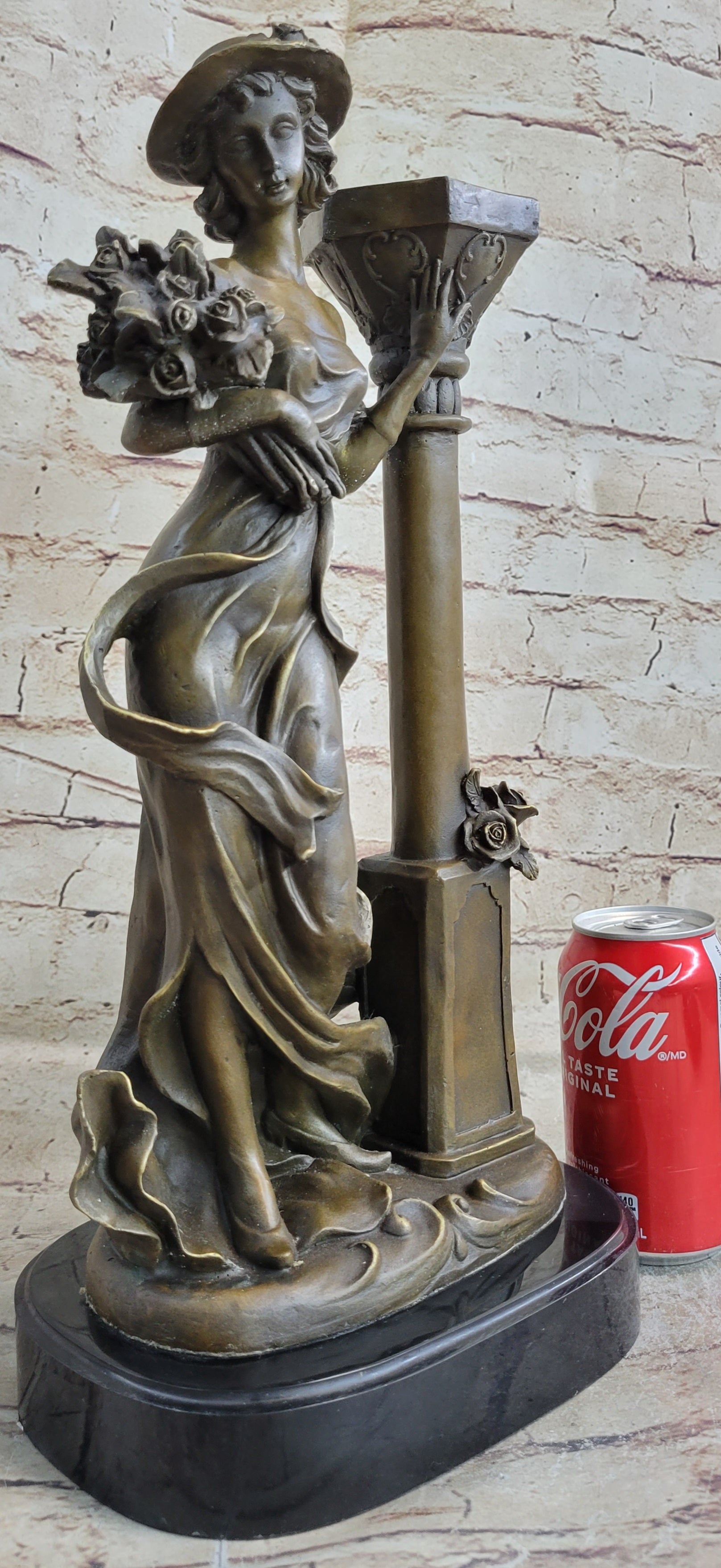 Victorian Style Captive Lady Holding Bouquet of Flowers Bronze Sculpture Figurin