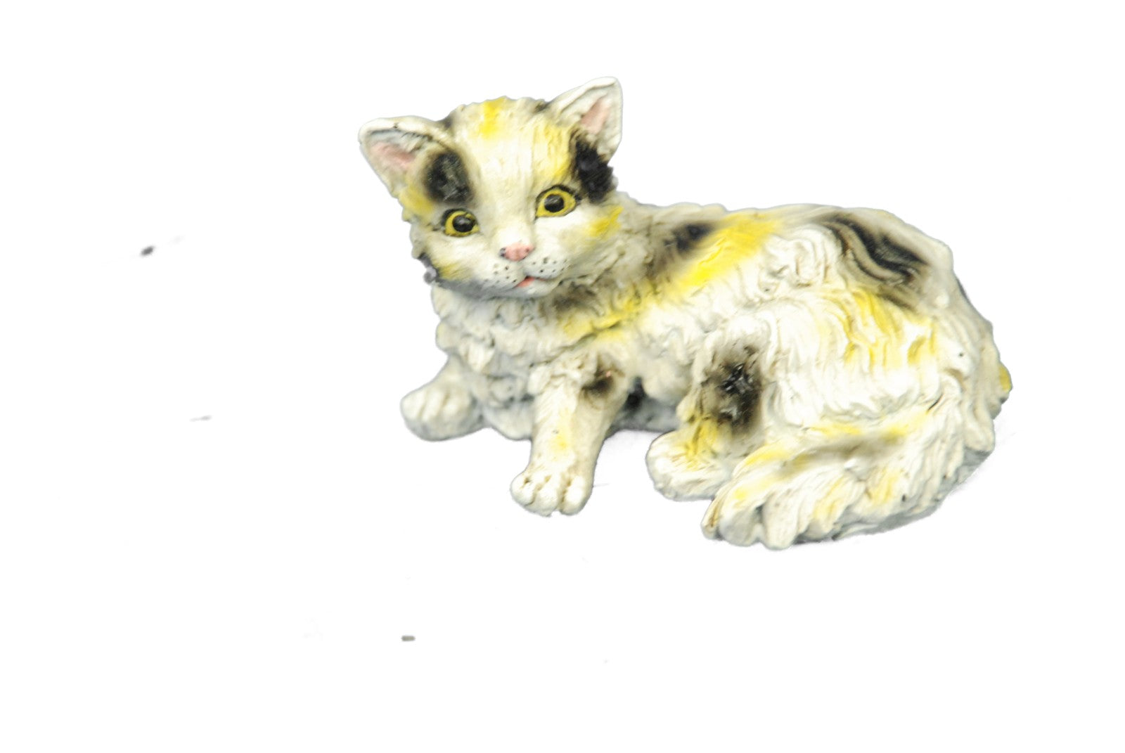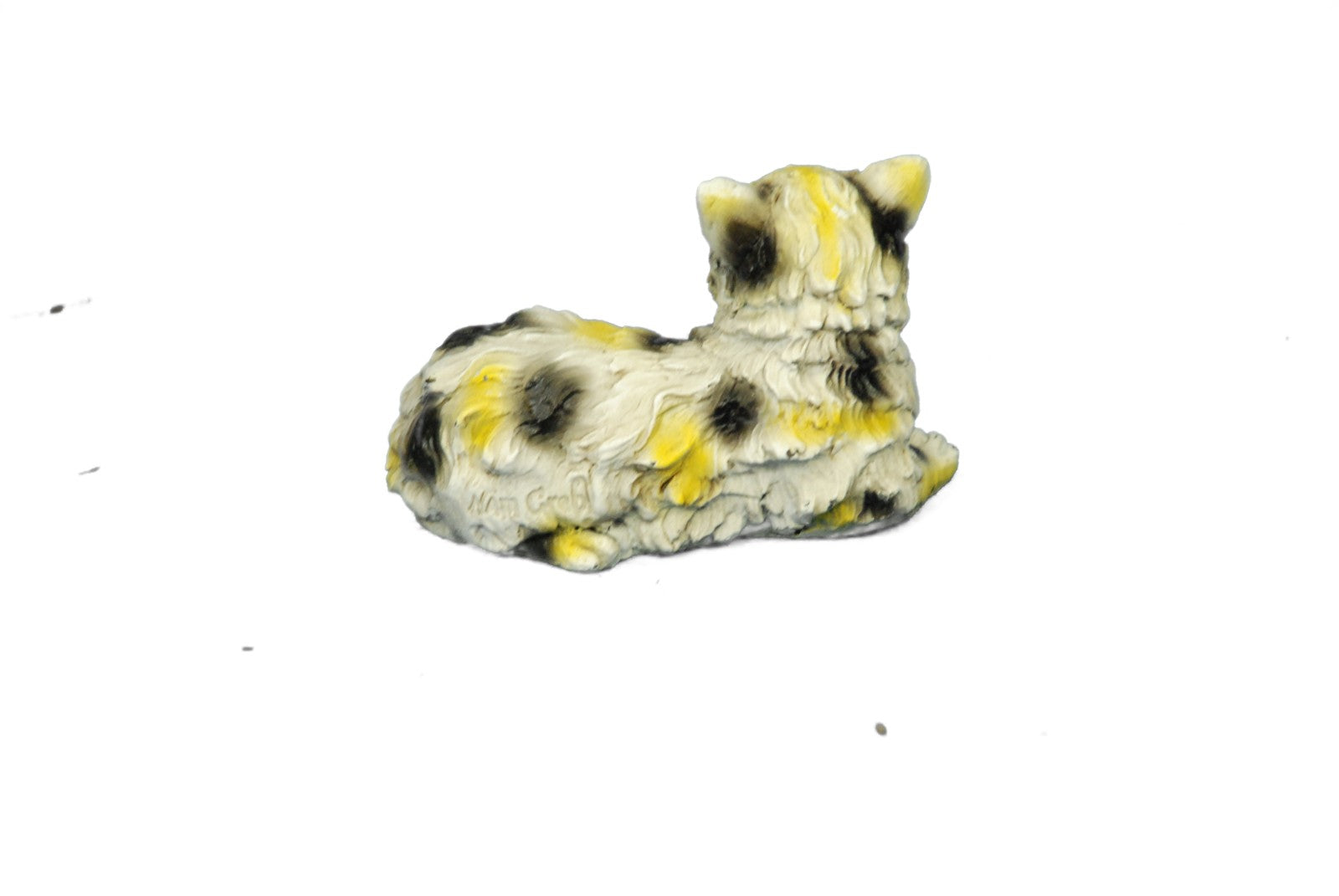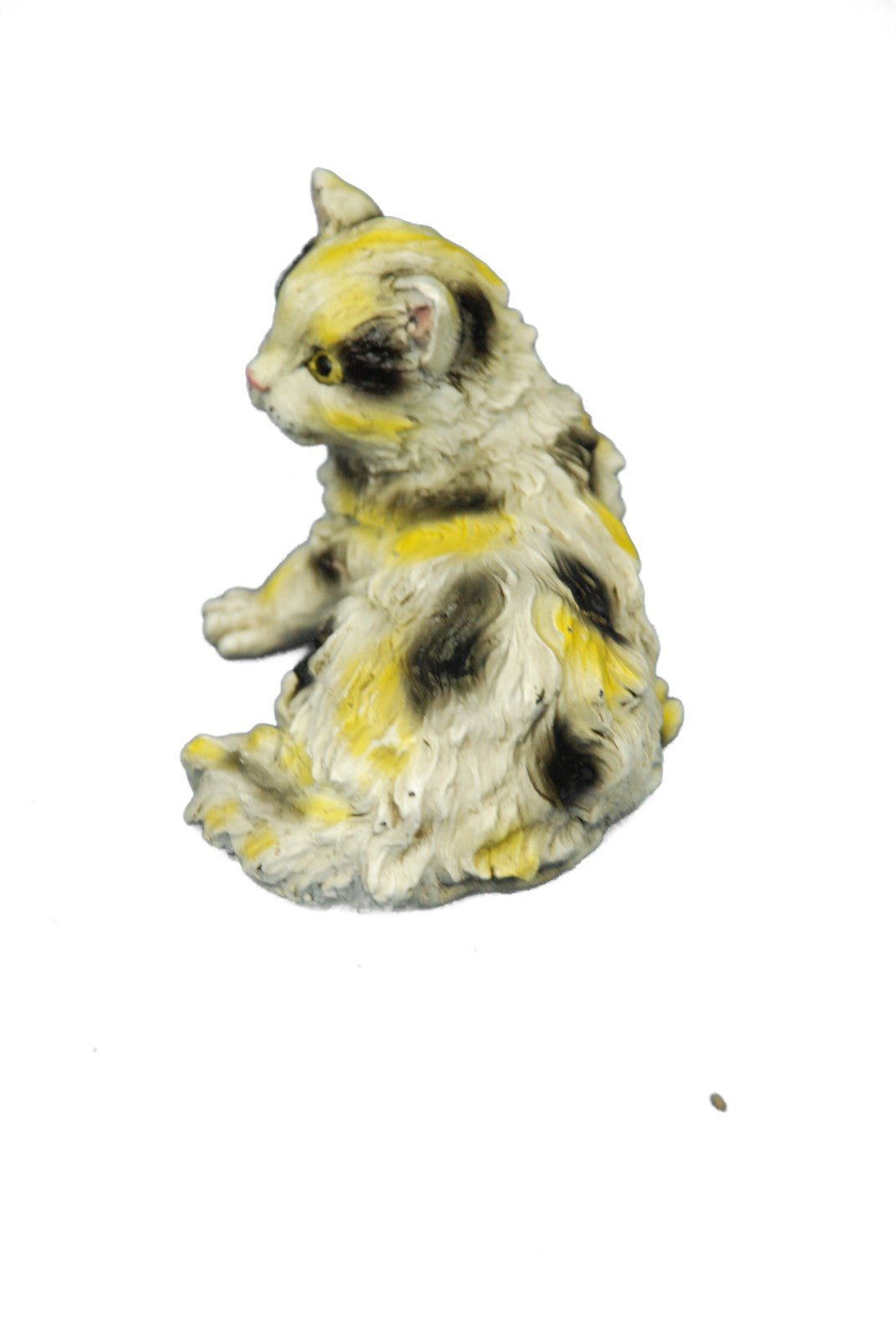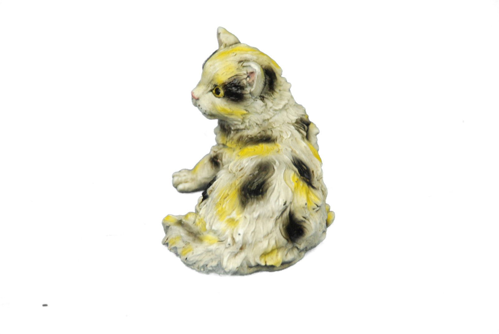 This cute little cat sits curiously and wraps his tail around him. As he sits he watches the world go by and takes in all the sights and sounds the world offers. It looks as if he has spotted something in the ground in front of the stone he is sitting on. His eyes are fixated downward and he flicks the top and is signed by artist BergmanBronze Dimensions :Height 2" x Width 3"