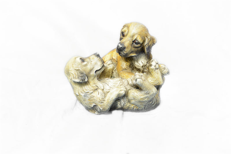 Two Puppy Labrador Cuddles Up Against each other playing. One Nuzzles His Head Downward, While His Sibling Crawls Over his Back. The Pups Are A Spitting Image Of each other, With Her Round Nose And Floppy Ears. 100% Bronze And Handmade, This multi color Patina Sculpture Was Cast Using The “Lost Wax Method’ And Is Signed By Artist Bergman.Original or Reproduction: Reproduction