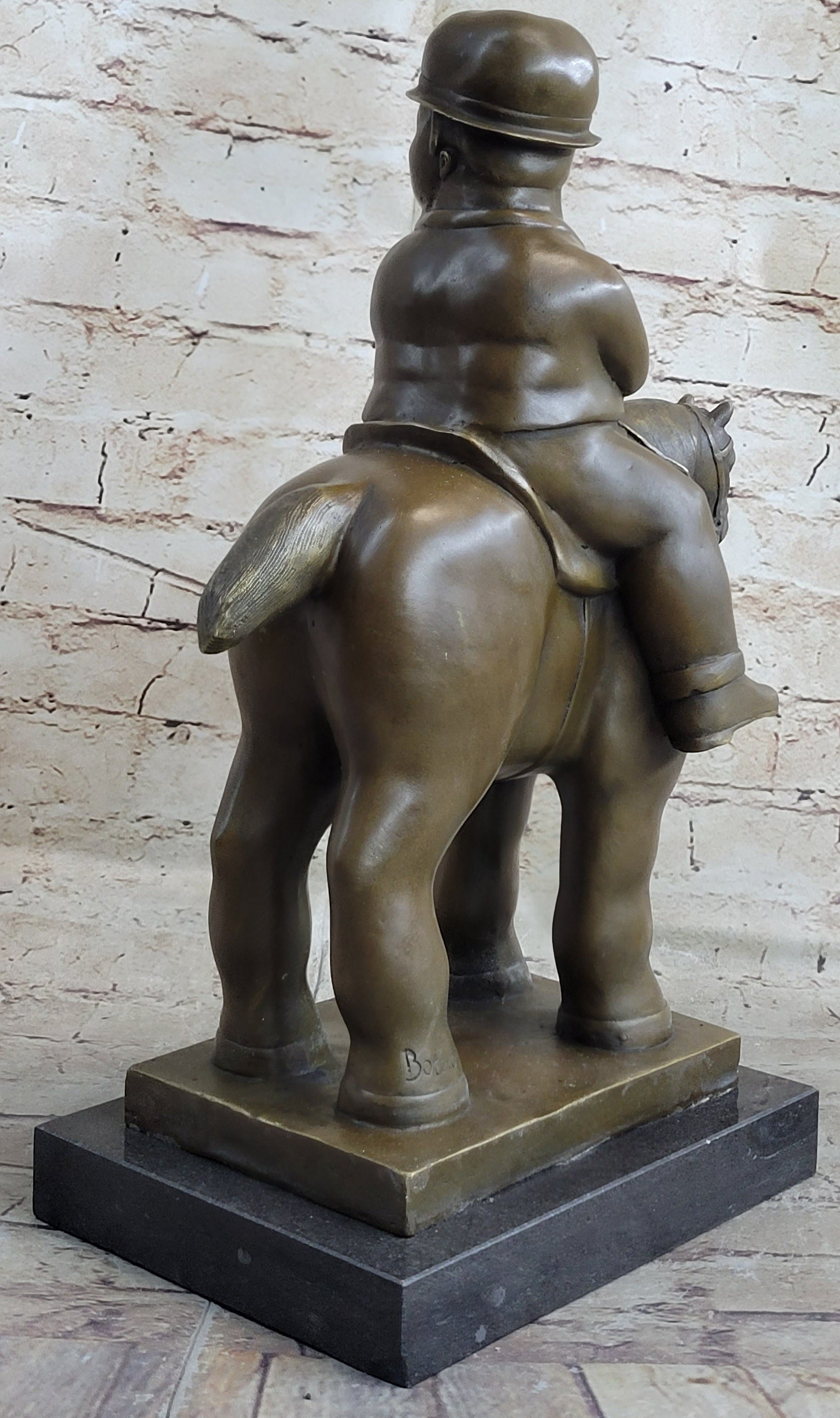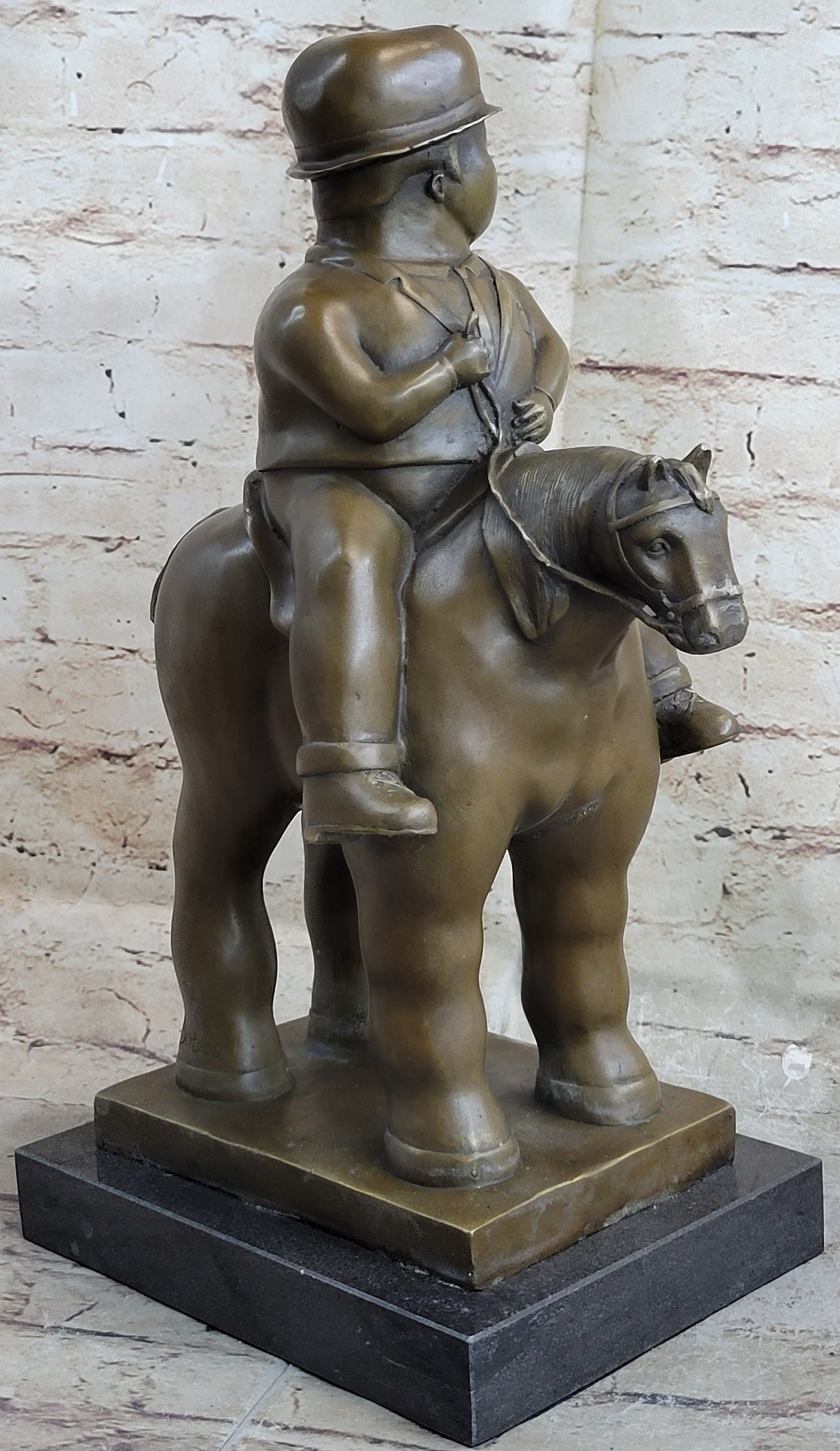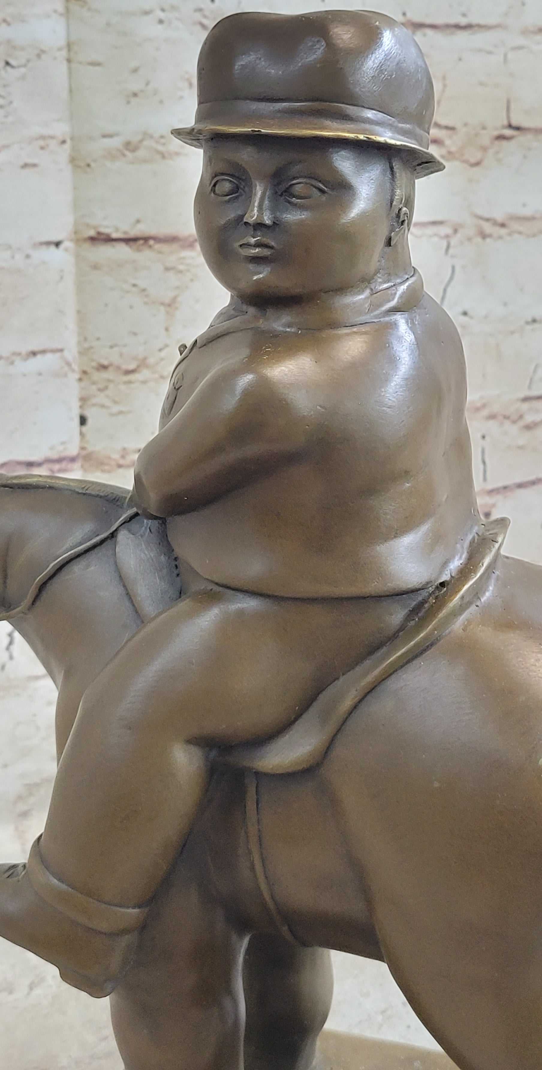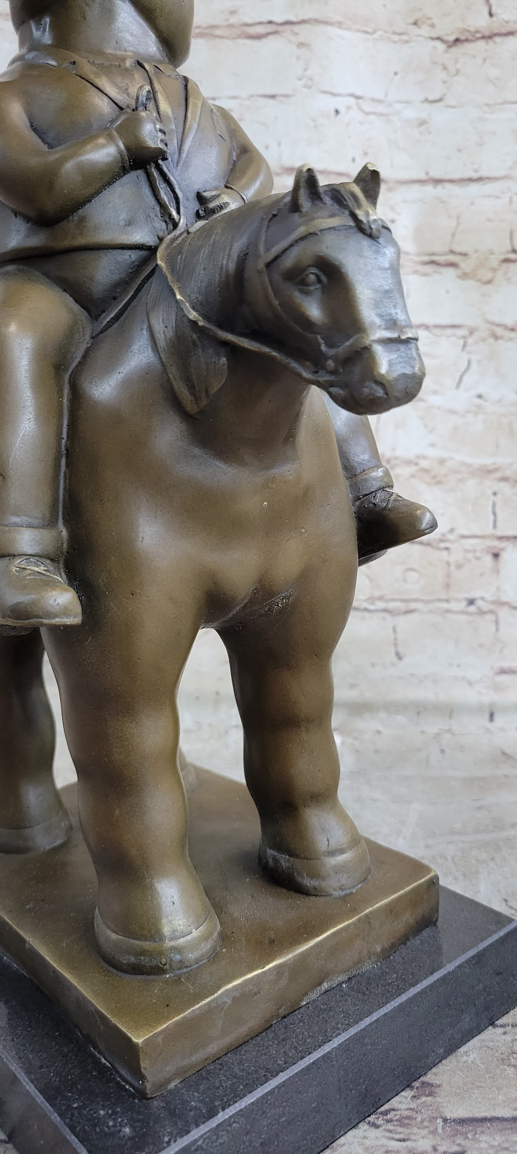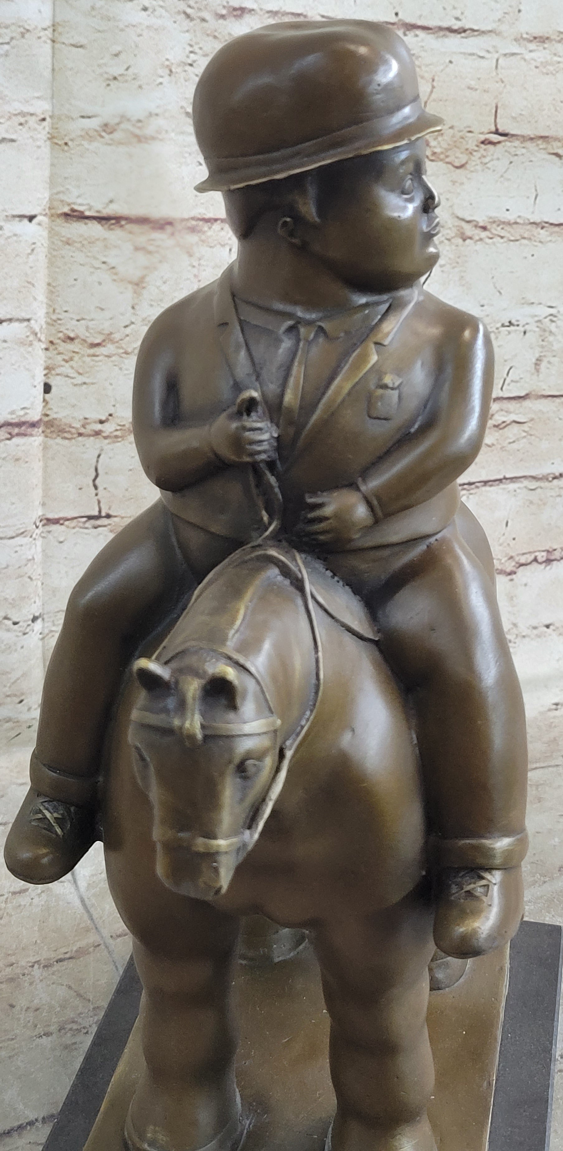 MAN ON A HORSE by Fernando Botero Bronze Statue Sculpture Marble Base 15" x 10"