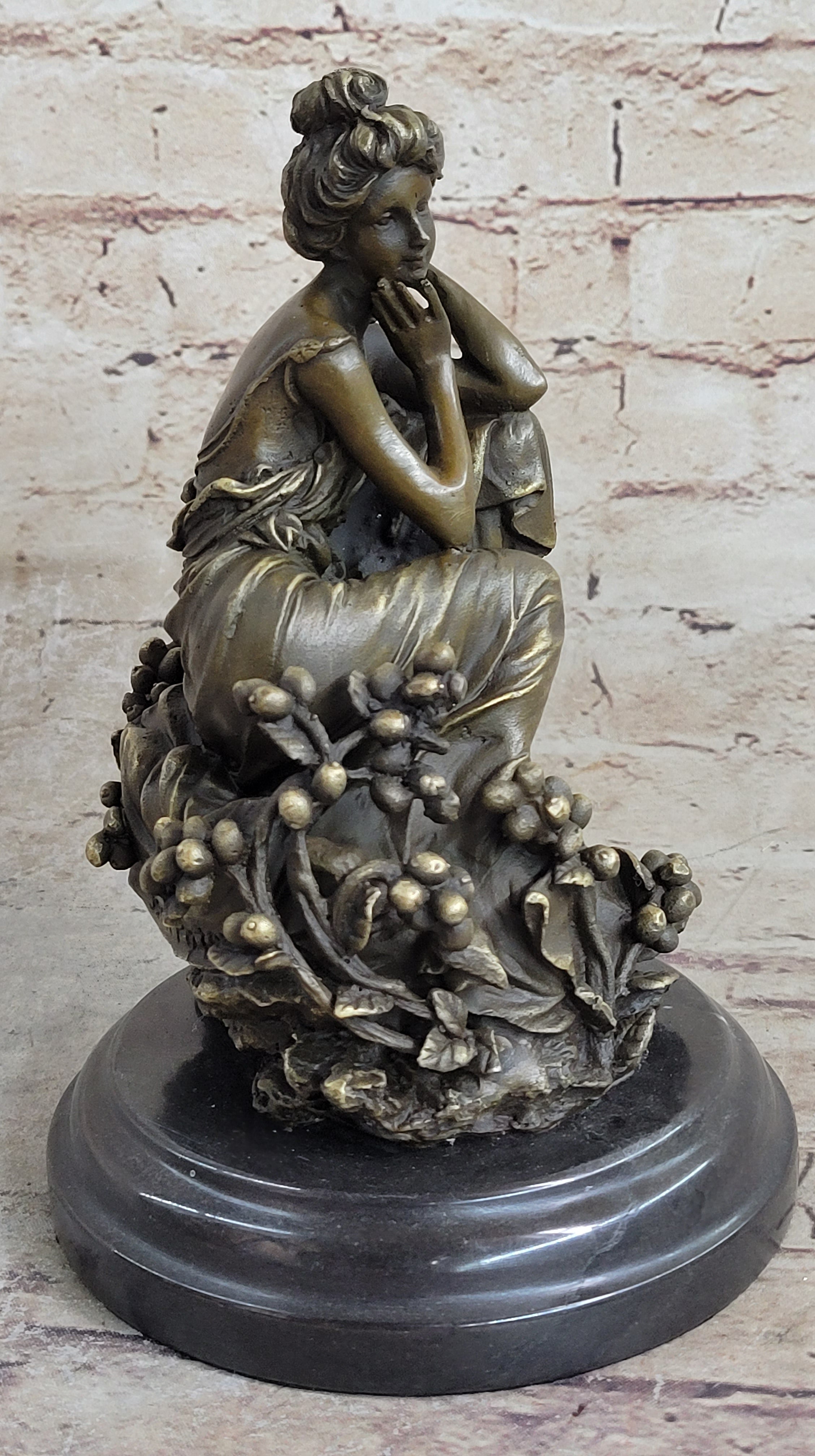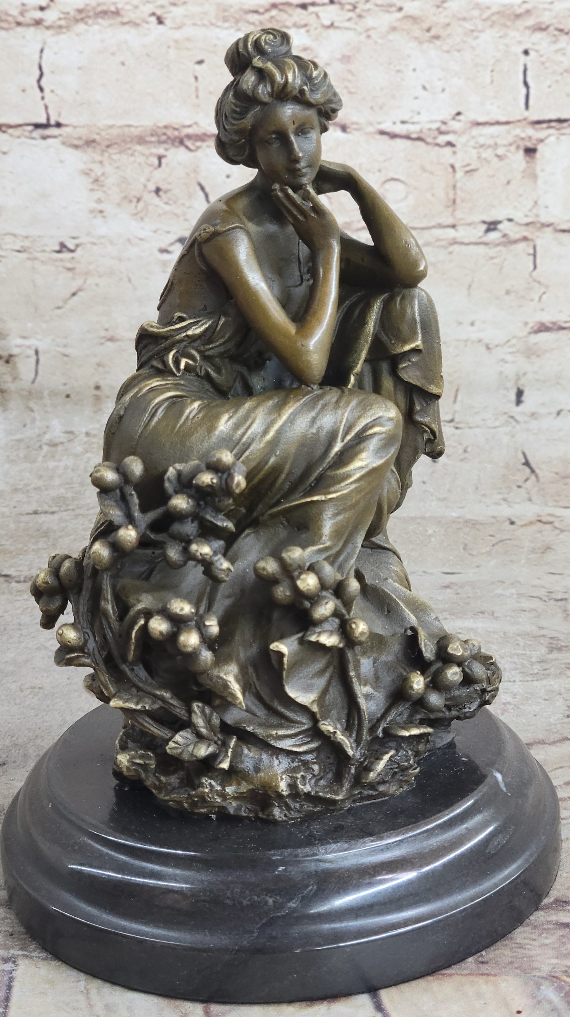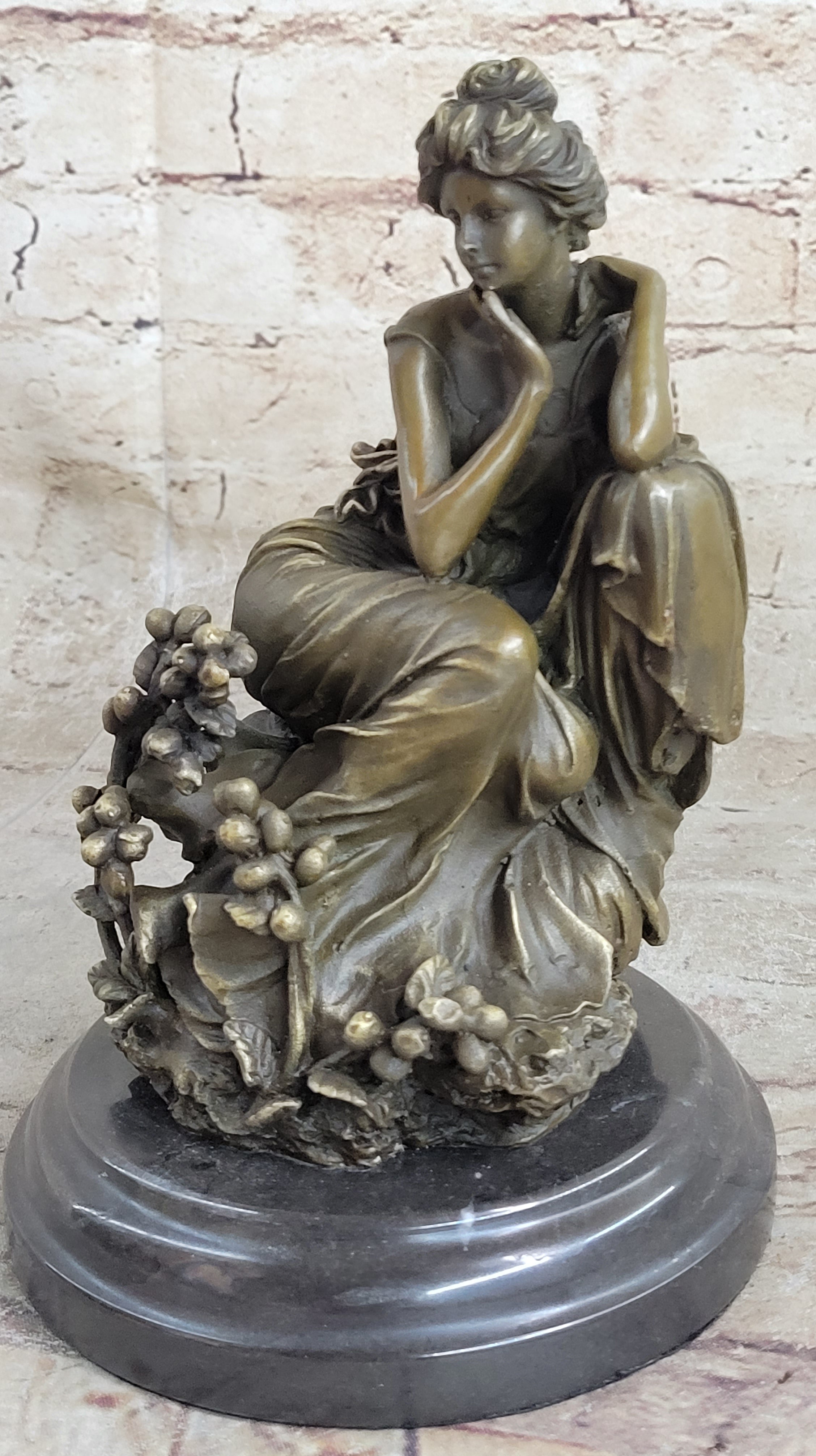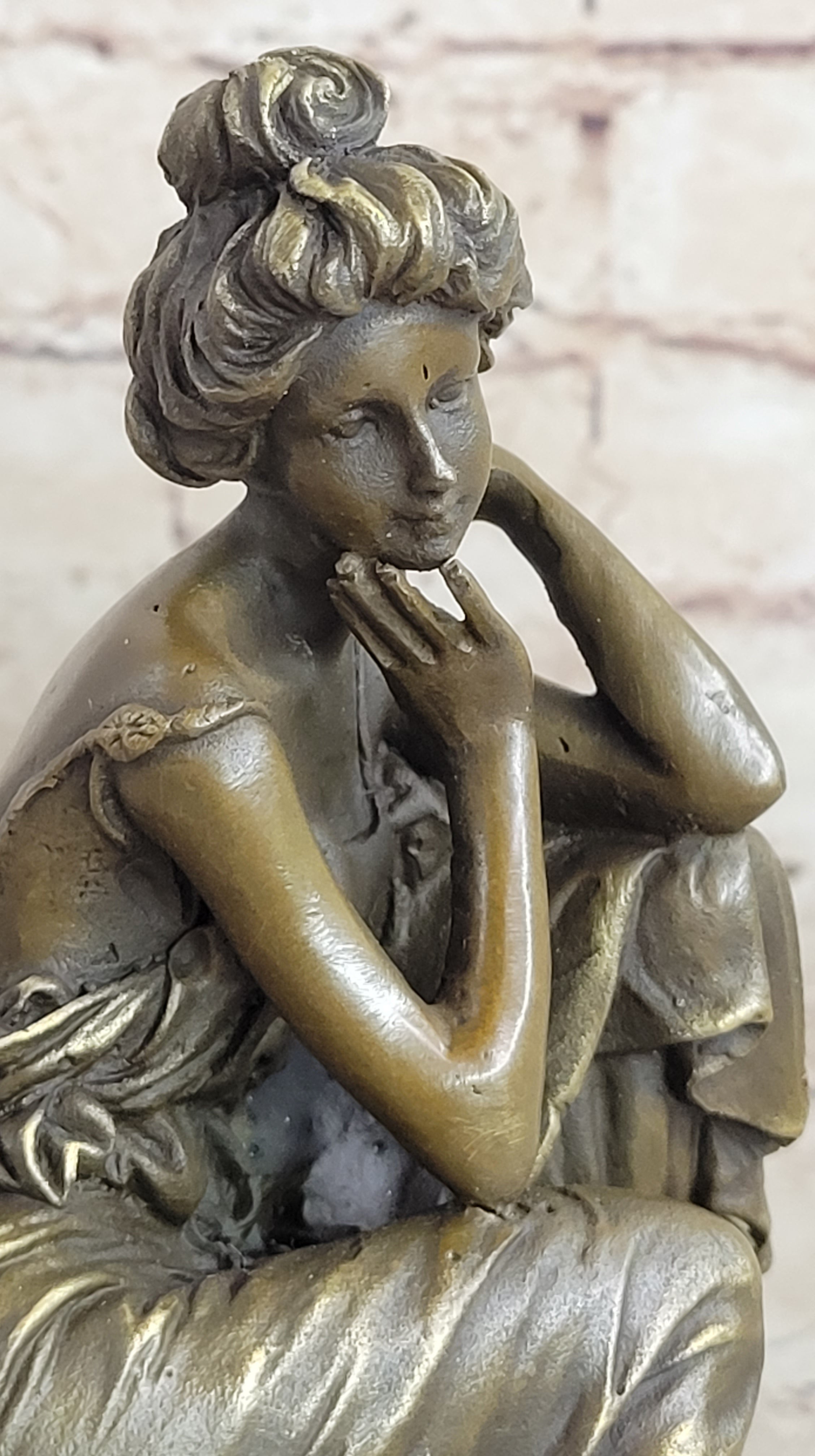 Classical Young Woman in Thought Female Bronze Figure Statue Sculpture Decor