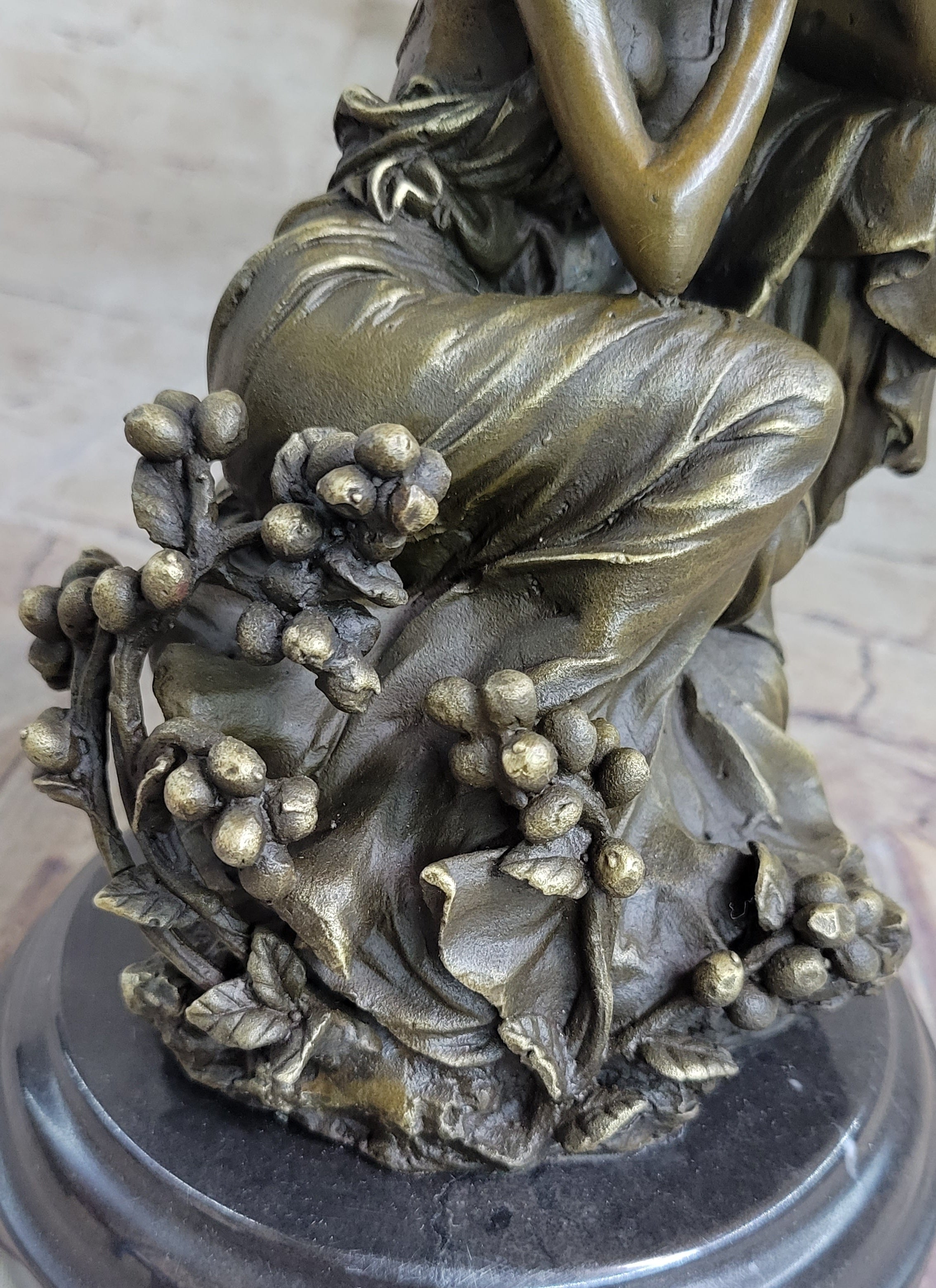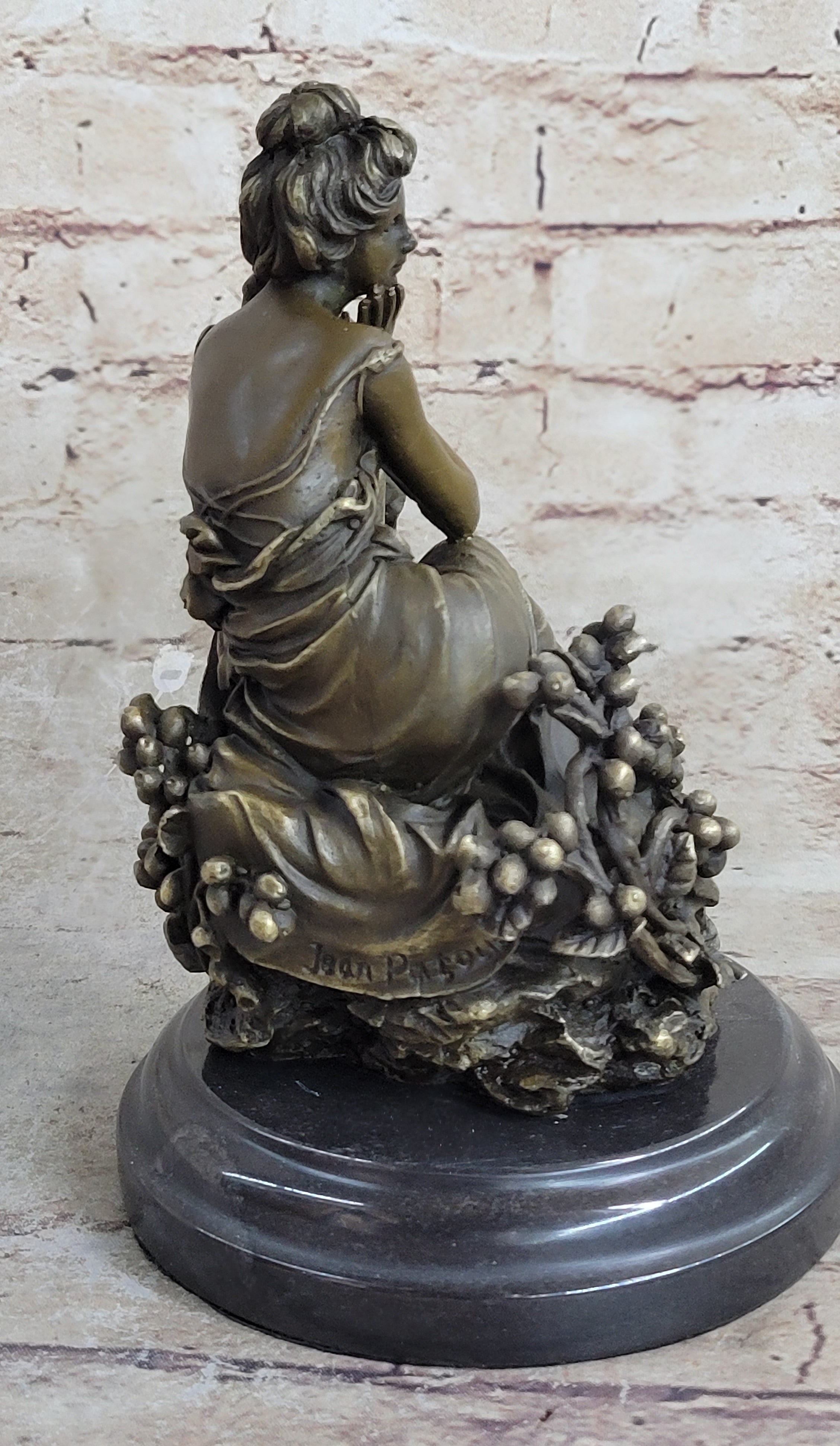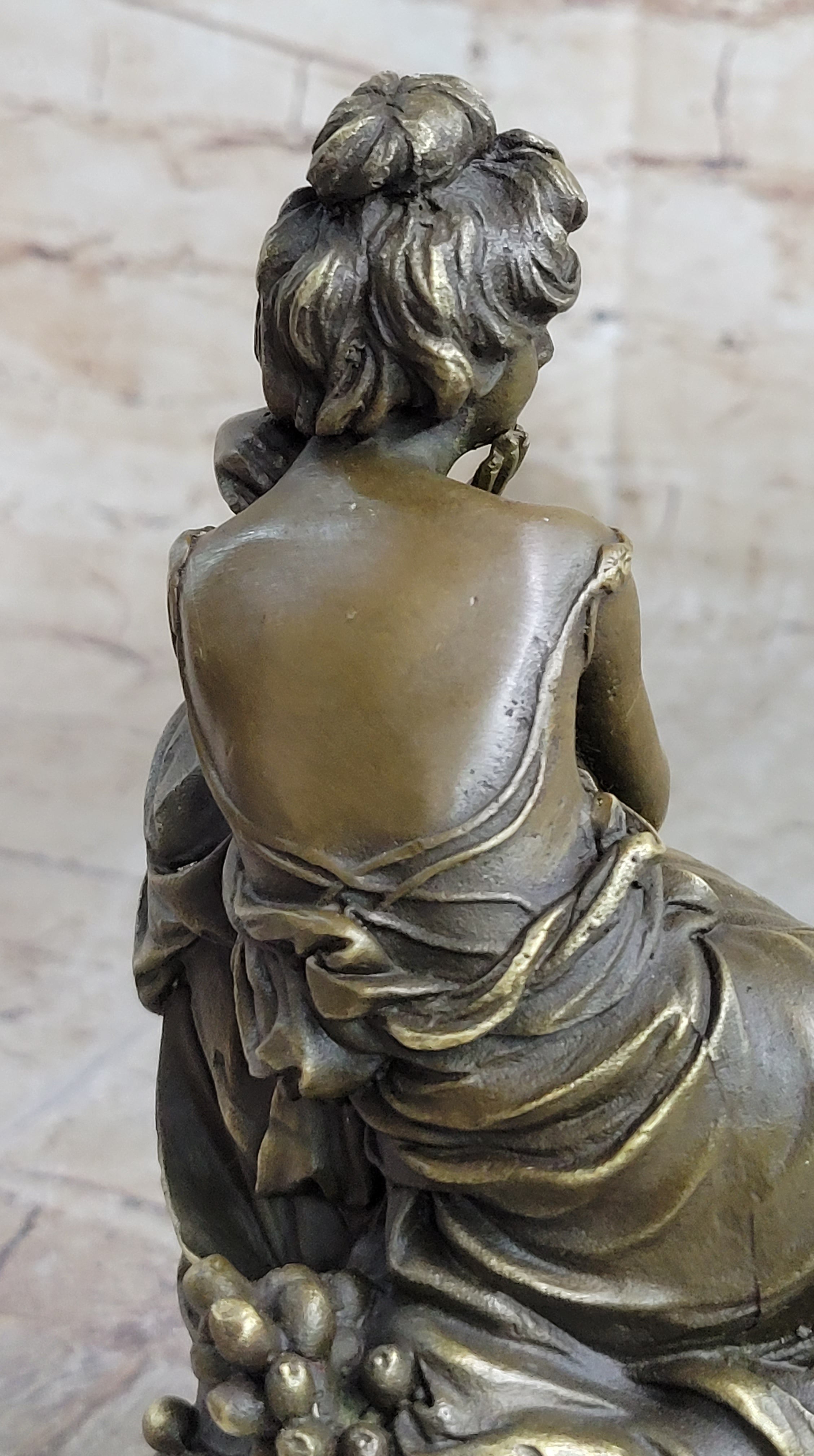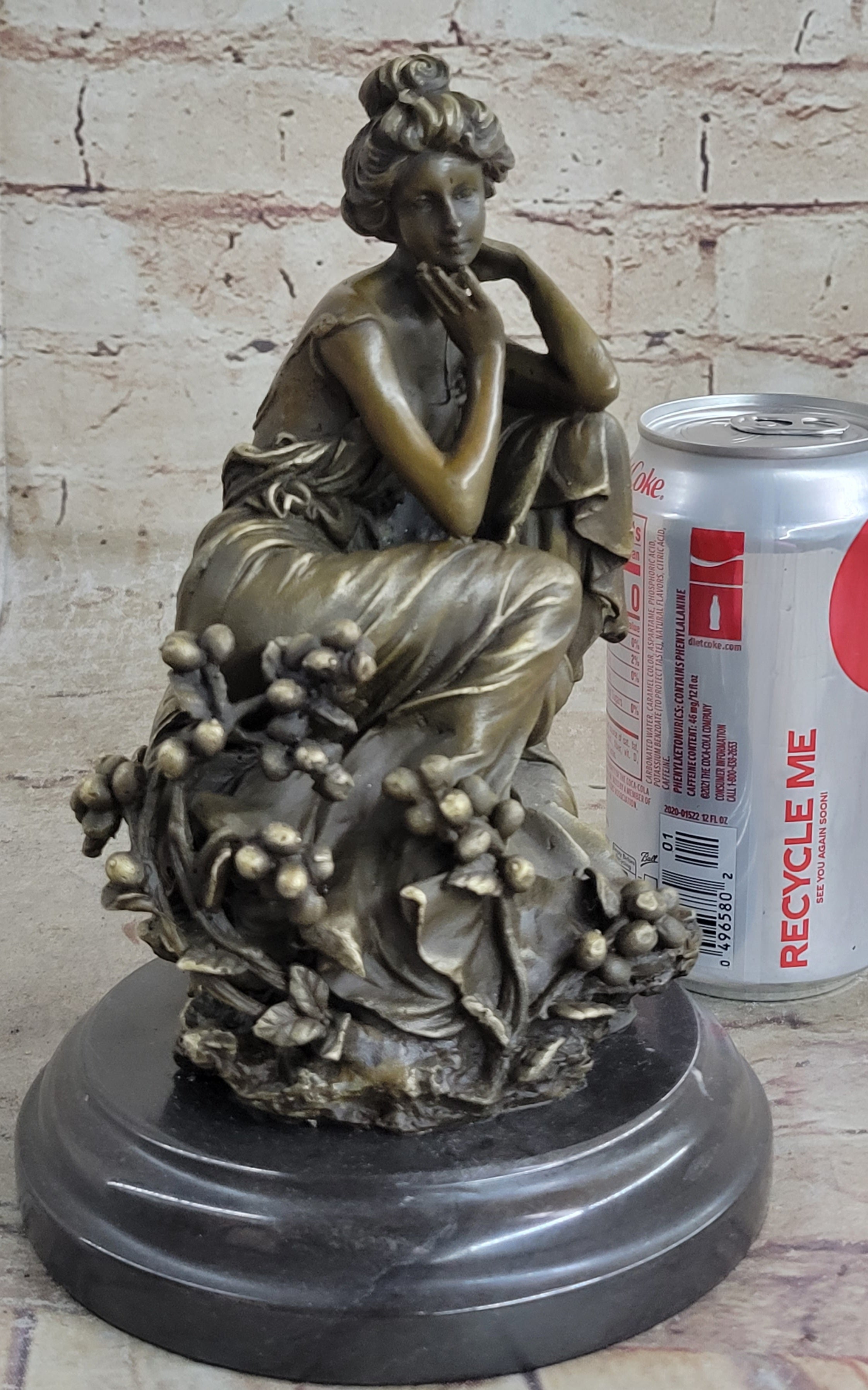Classical Young Woman in Thought Female Bronze Figure Statue Sculpture Decor