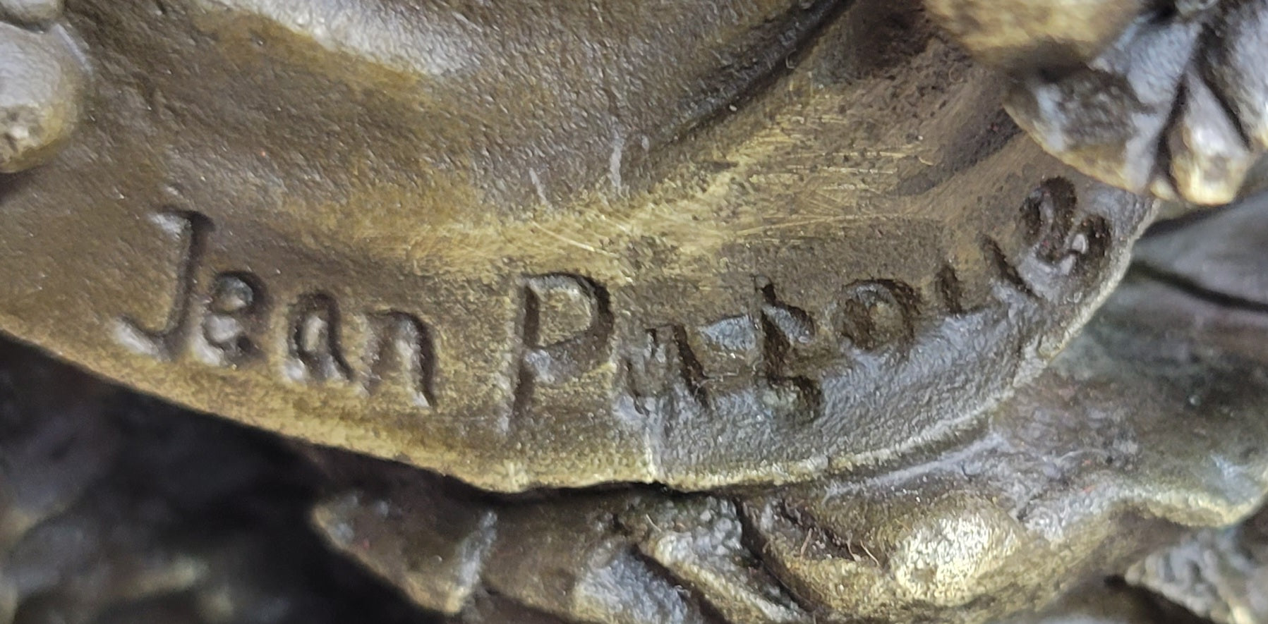 All the bronze sculpture in our store was casted using the Hot Cast Lost Wax Method. What gives Bronze value beyond that of a "souvenir" that ends up in a closet? There are many reasons including cost of materials (bronze, silicone for molds, tools, ovens, etc.) The main reason is there are very few people trained in the tedious process practiced by the ancient Greeks and Romans. Bronze sculpture is not easy to make and many time consuming, difficult steps are involved. In a world of hi-tech mass production, bronze casting remains essentially unchanged. Beware of "cold cast" or "bonded bronze", these are misleading names given to plastic figurines. Each of our genuine bronze castings is using the classic "cire perdue" (lost wax cast technique.). This 100% Handmade Bronze Sculpture Was Captured Using The Archaic Method Of Lost-Wax Casting And Stained With A Brown Patina Finish and is signed by the artist Jean Patoue.Bronze Dimensions with Marble Base: Height 8" x Width 5"