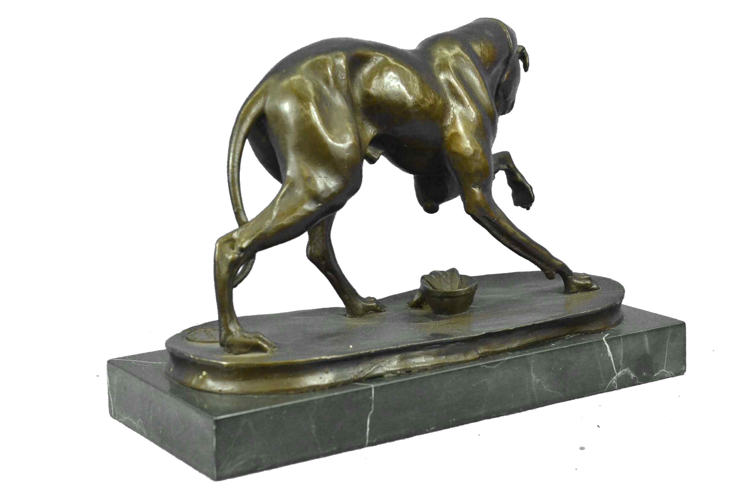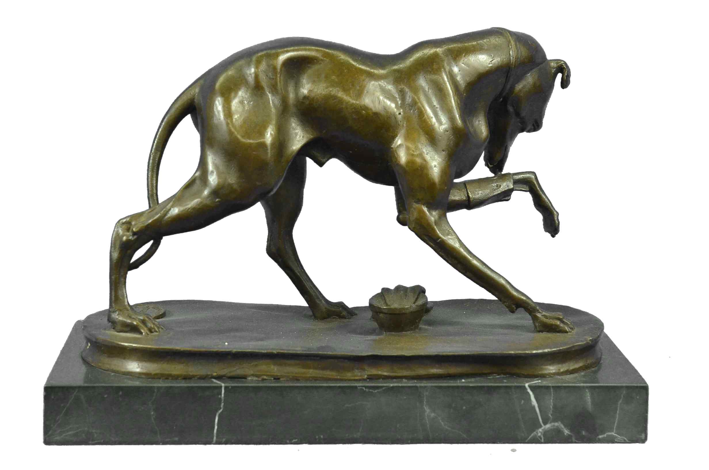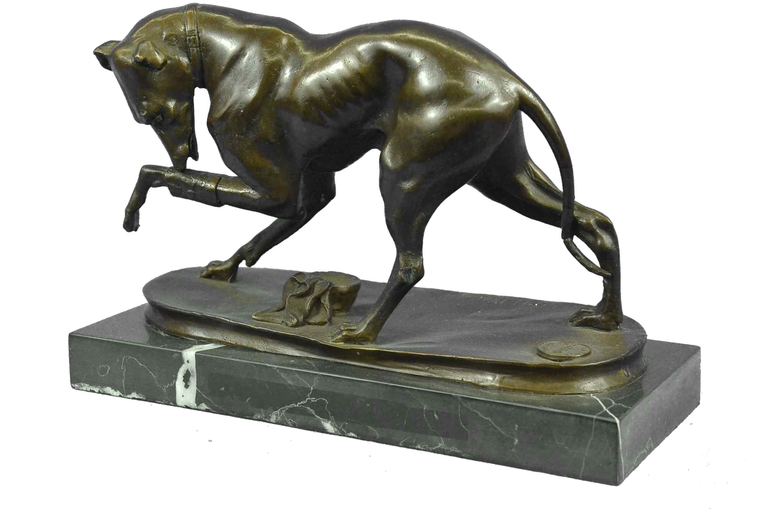 This sculpture of this beautiful and strong Grey Hound is amazing. This lovely dog sculpture would go perfect in anyone house, as a keeper or a gift you must see it face to face. The details on each part of his body is astonishing from is face, tail, bones, legs everything is spectacular. This sculpture was cast using for ancient old "Lost Wax Method" stained in brown patina. 100% handmade and 100% bronze, which is mounted up top a black marble base and its signed by the artist Carl Kauba.Original or Reproduction: Reproduction