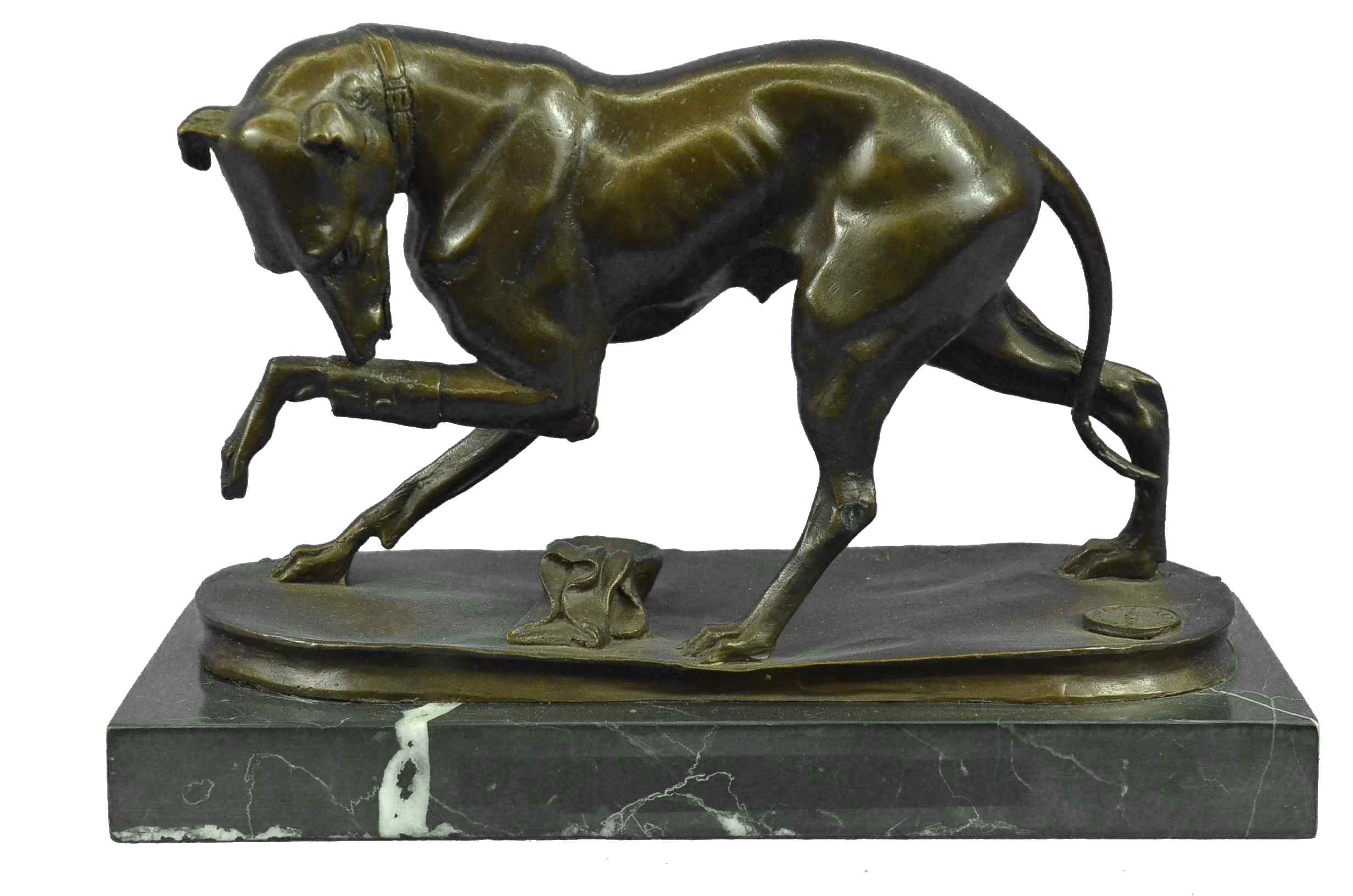 Vintage Bronze Whippit/ Greyhound Statue On Black Marble base Figurine Figure