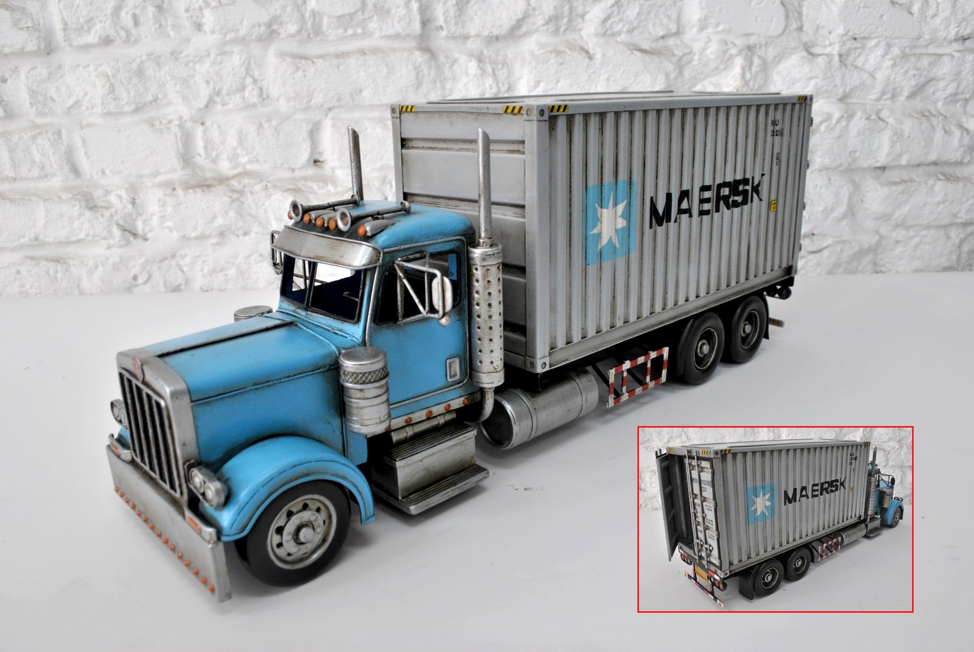 Decorate for any table, desk, or shelf in sporty fashion with Our Rustic SEMI TRACTOR TRUCK & TRAILER. Featuring a rustic iron frame, this charming vintage Classic Truck includes a fine detail's. The Blue and Silver Trim metal Exterior are finished in natural colors. For more than 20 years, European Finery has been providing high quality sculpture, accessories, and decor for any room for its customers' homes. Based in New York area, We grown to become one of the largest importers and wholesalers of home decor and hand made sculptures in the country. Whether you're looking for accent Sculpture, wall decor, vintage Toys, or just about any outdoor lifestyle sculpture , We Became a proven and trustworthy name that has become synonymous with superiority.