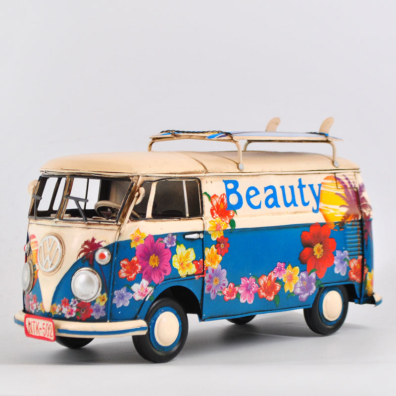Vintage Hand Made Hawaiian Style Flower VW Volkswagen Mini Bus Sculpture