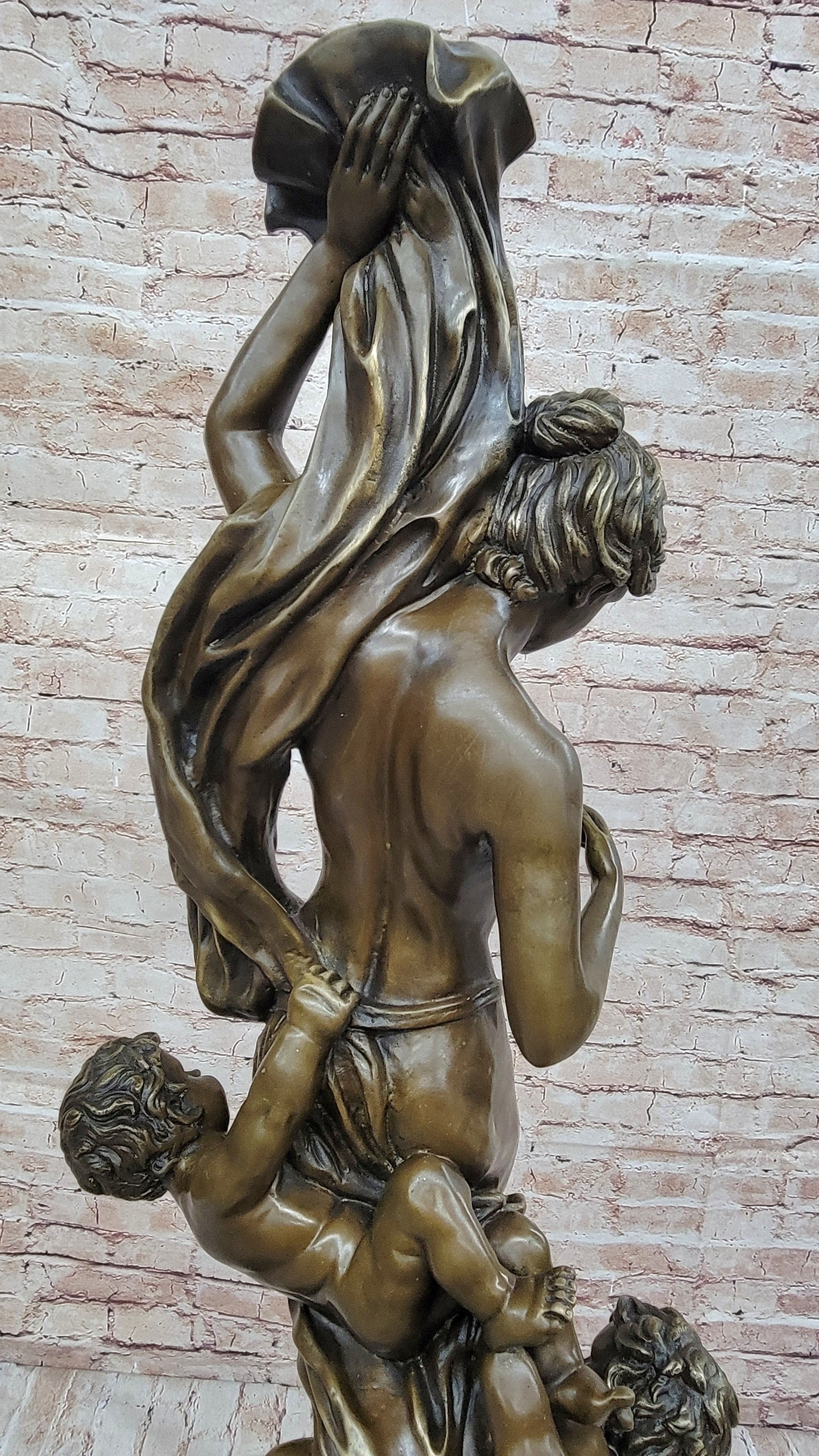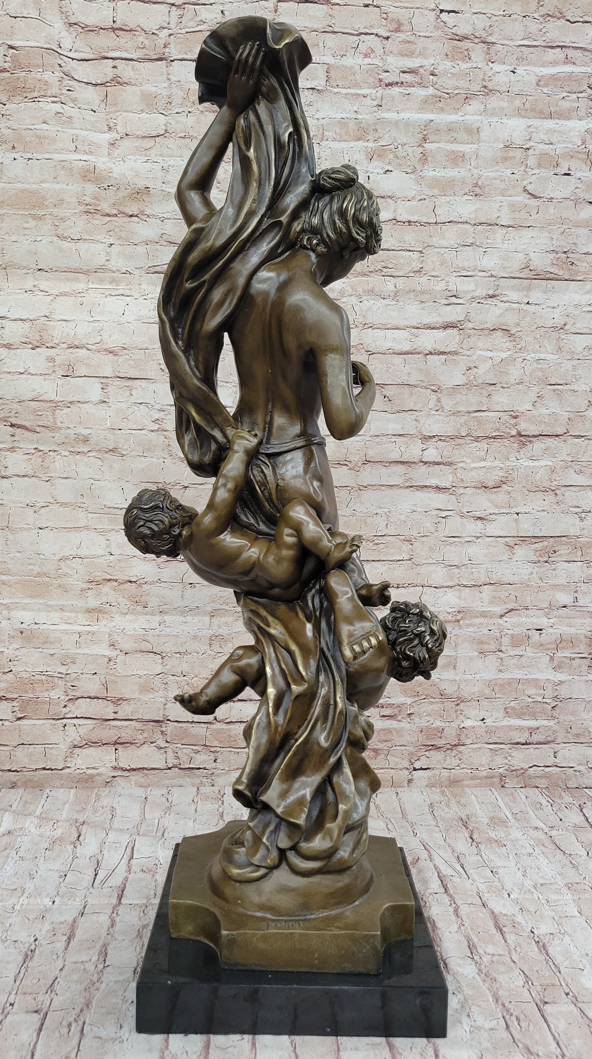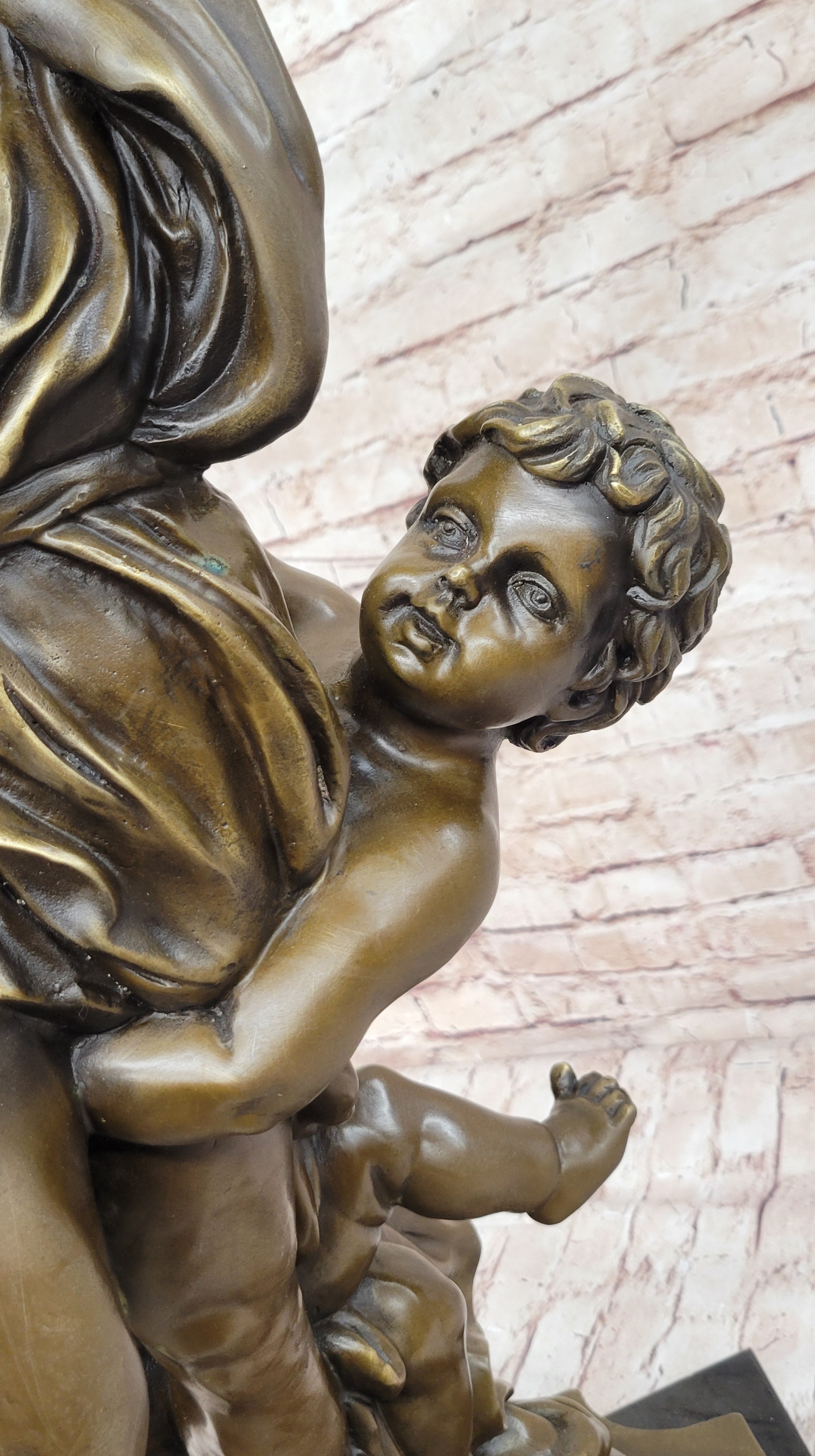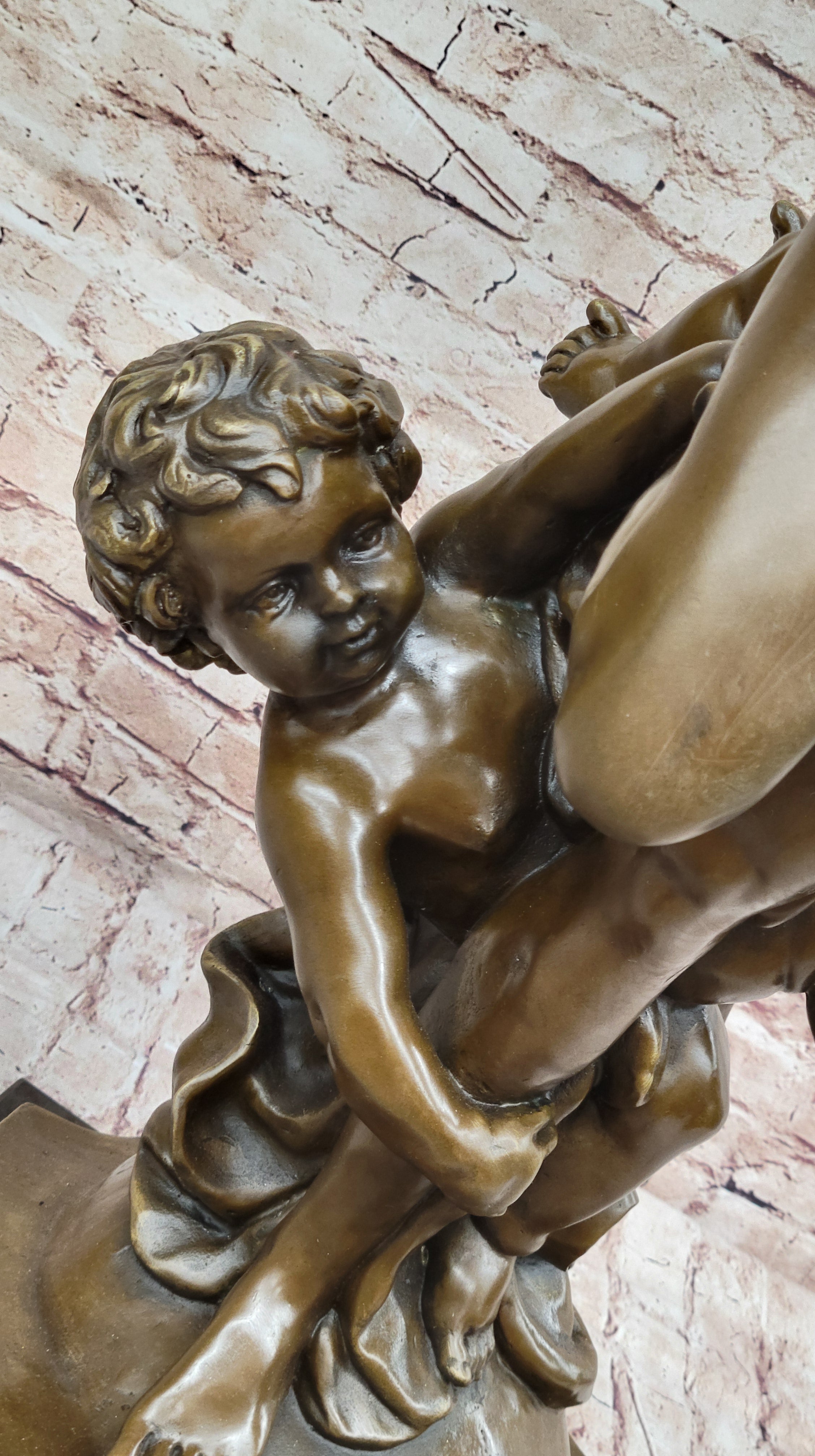 Vintage Style Classical Nude Female & Cherubim - Bronze Metal Sculpture Original Art