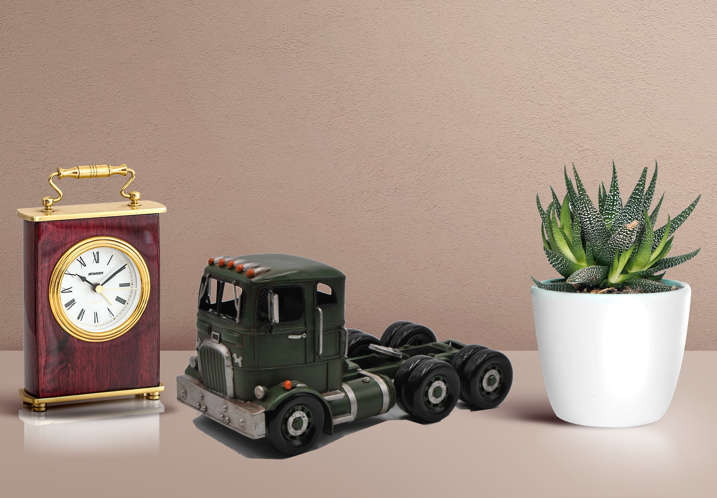 Decorate for any table, desk, or shelf in sporty fashion with Our Rustic SEMI TRACTOR TRUCK & TRAILER. Featuring a rustic iron frame, this charming vintage Classic Truck includes a fine detail's. The green and Silver Trim metal Exterior are finished in natural colors. For more than 20 years, European Finery has been providing high quality sculpture, accessories, and decor for any room for its customers' homes. Based in New York area, We grown to become one of the largest importers and wholesalers of home decor and hand made sculptures in the country. Whether you're looking for accent Sculpture, wall decor, vintage Toys, or just about any outdoor lifestyle sculpture , We Became a proven and trustworthy name that has become synonymous with superiority.
