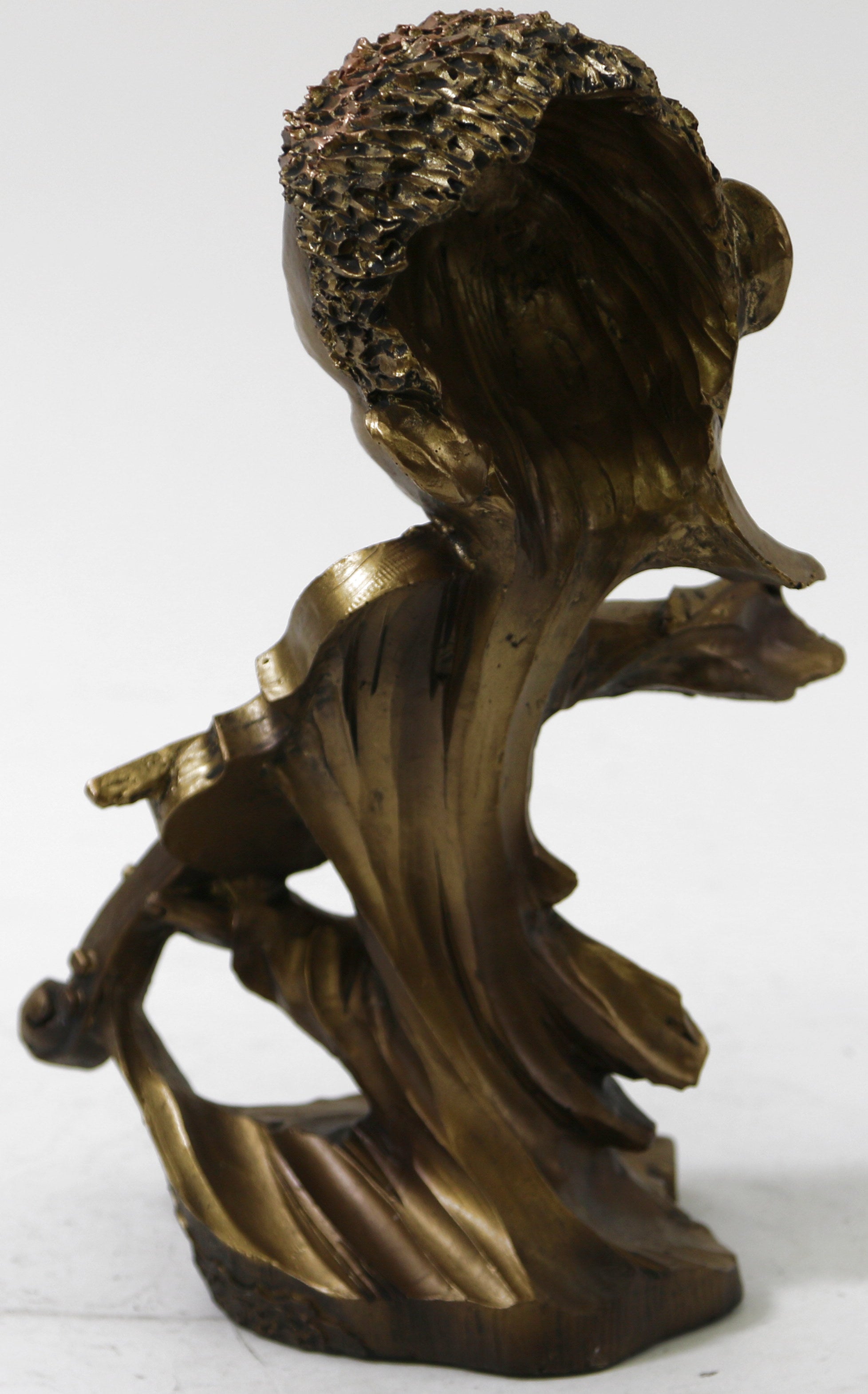 Cold cast bronze: A modern method of casting sculptures in which the casting material is a resin mixed with real powdered bronze. The finished sculpture has a surface which looks very similar to a traditionally cast bronze although it tends to be much lighter. It is a preferred method for achieving high quality of detail and finish and also to keep the weight down.Height :10"