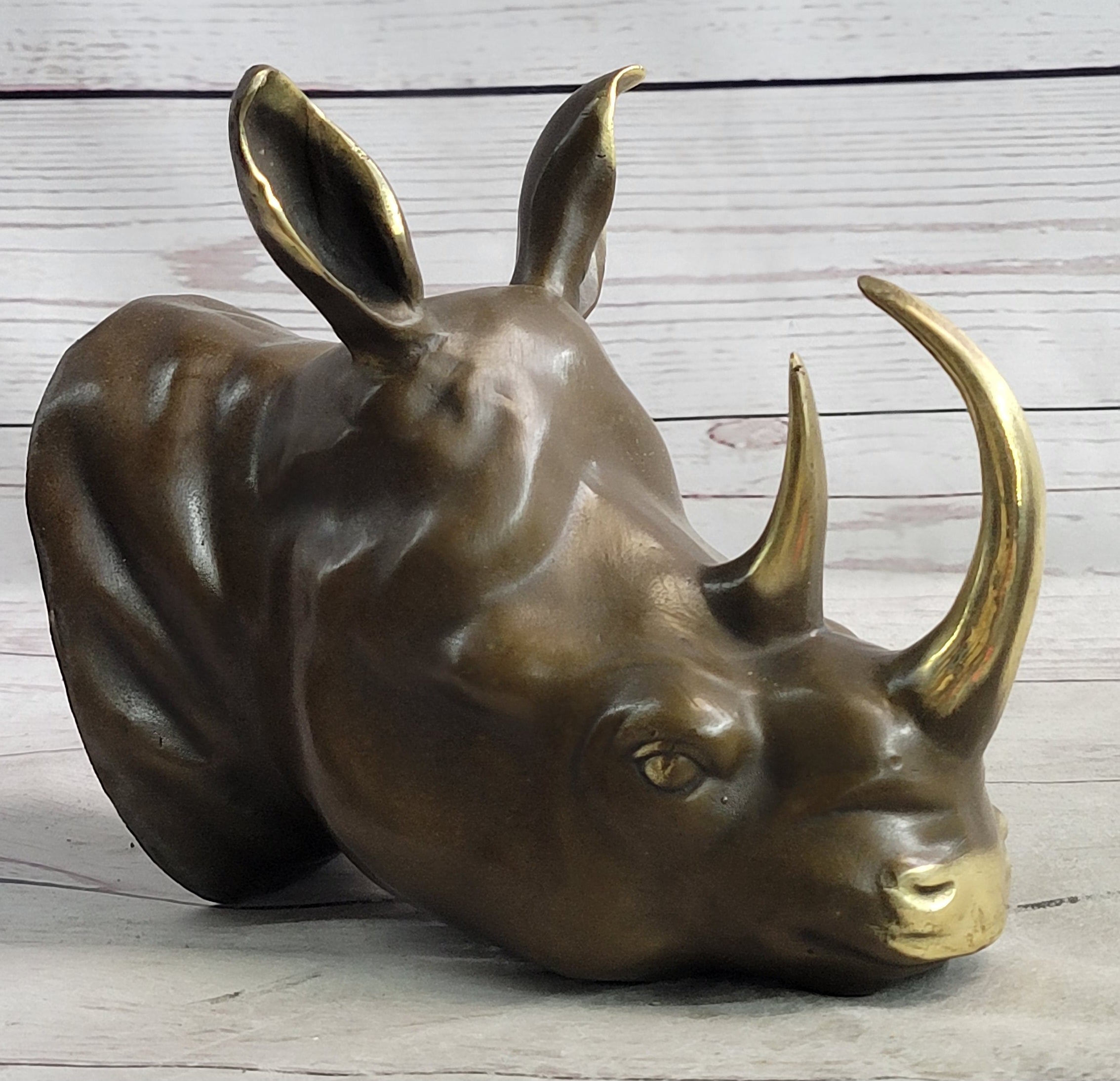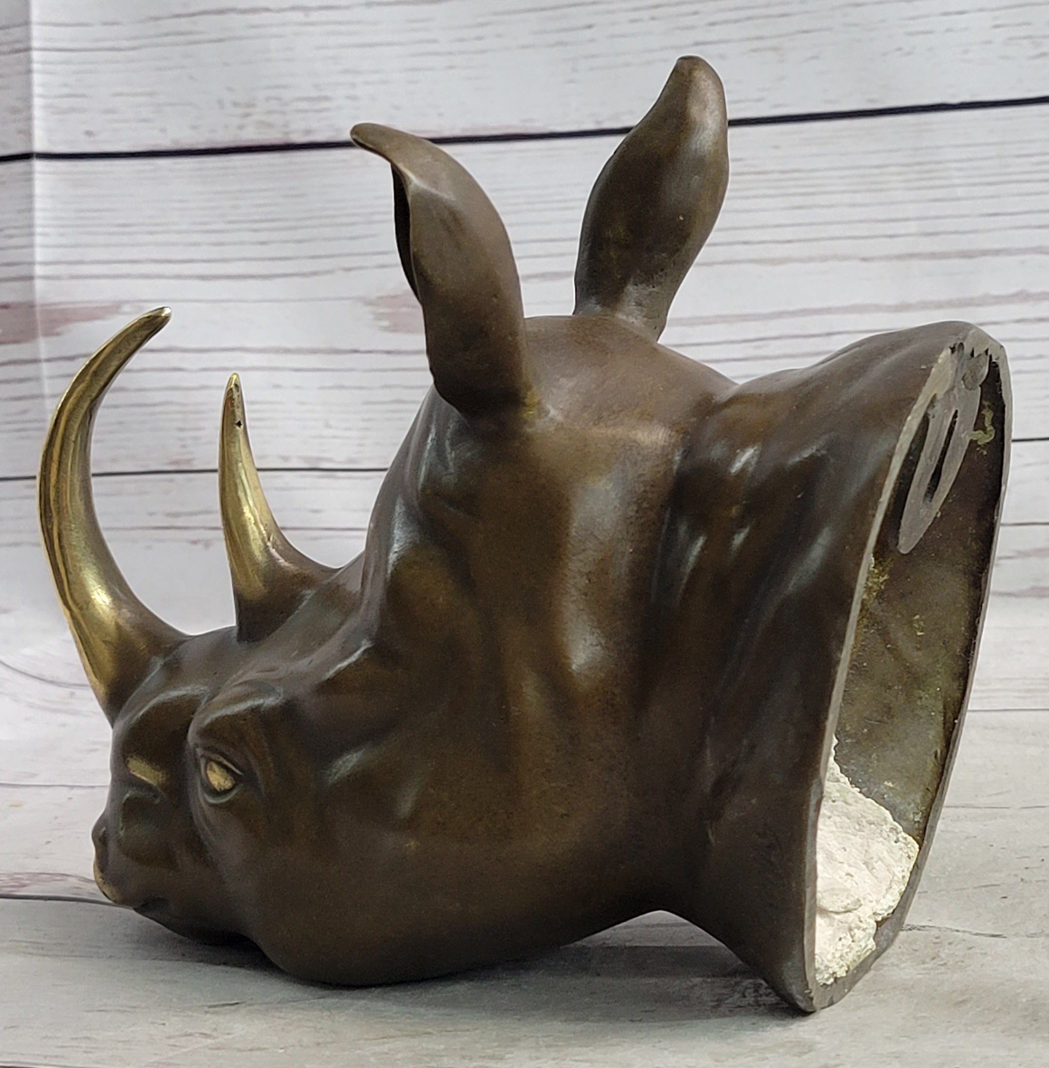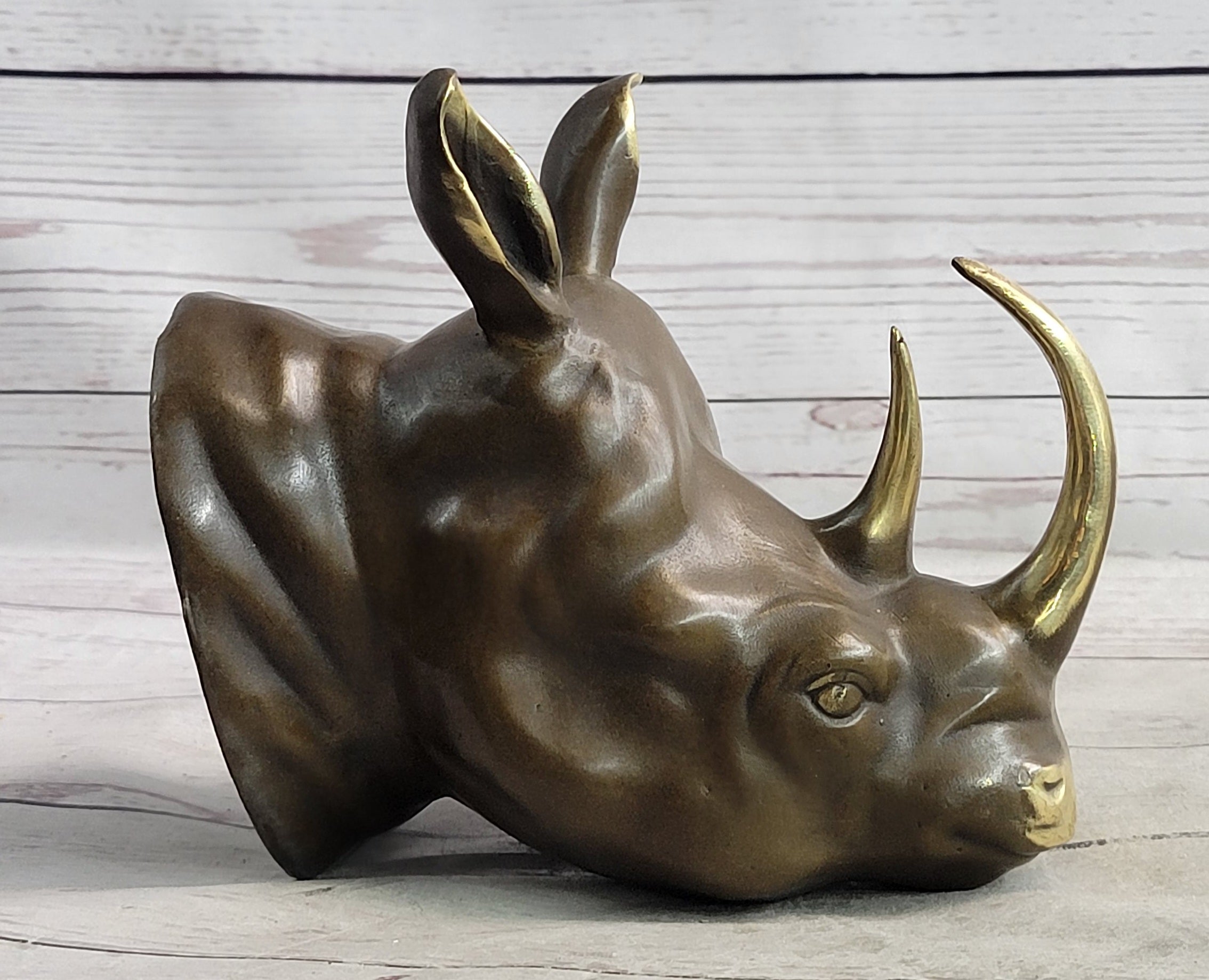 Wall Mounted Hanging Bronze Metal Rhinoceros Rhino Bust Sculpture Decor Trophy Room