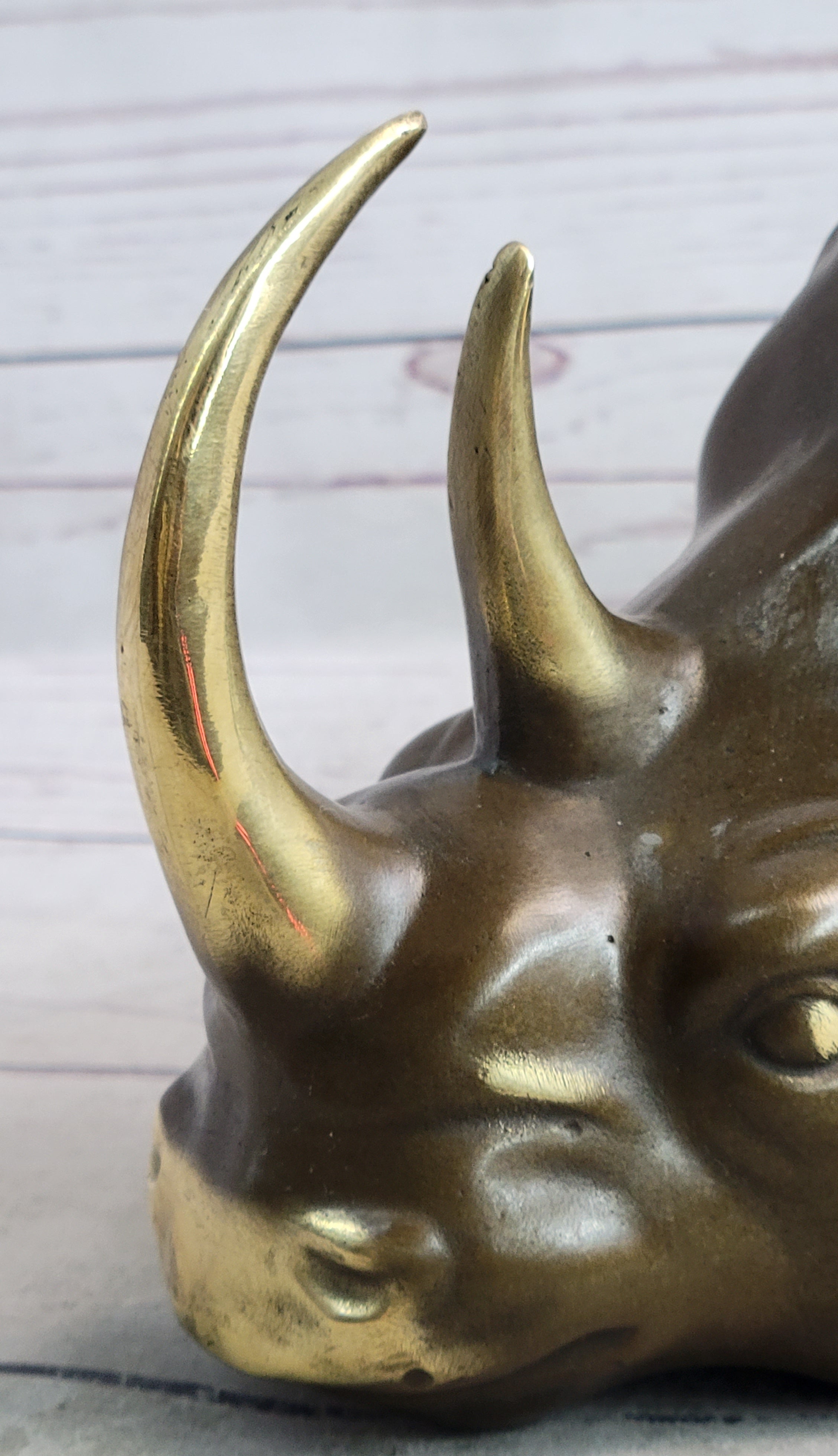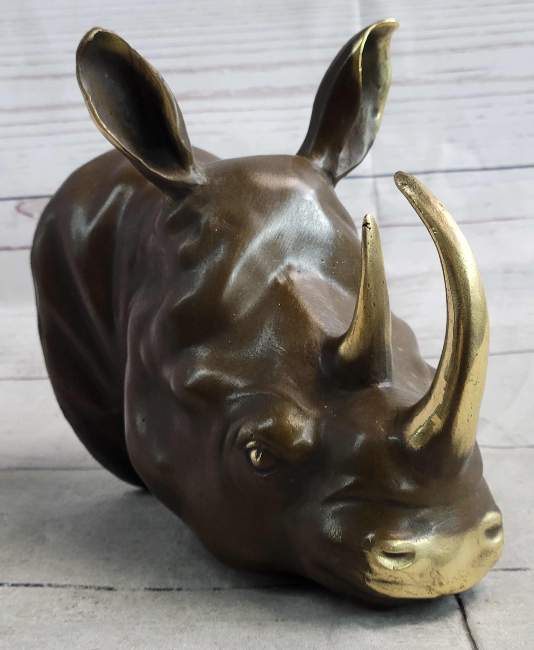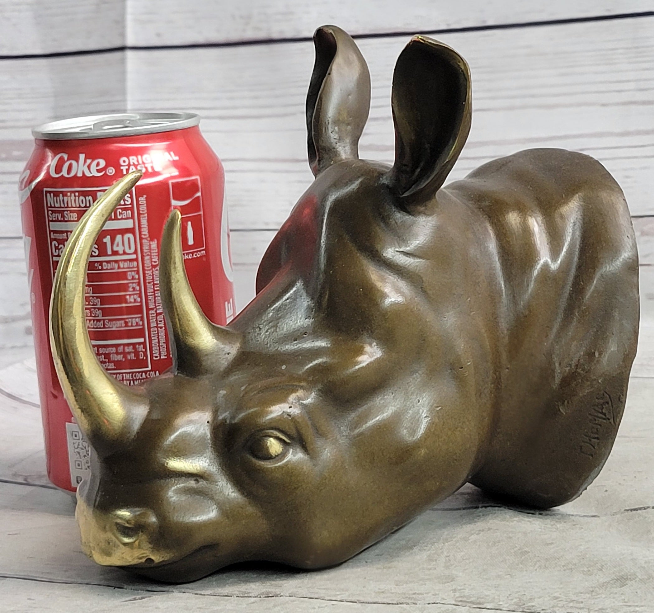 Wall Mounted Hanging Bronze Metal Rhinoceros Rhino Bust Sculpture Decor Trophy Room