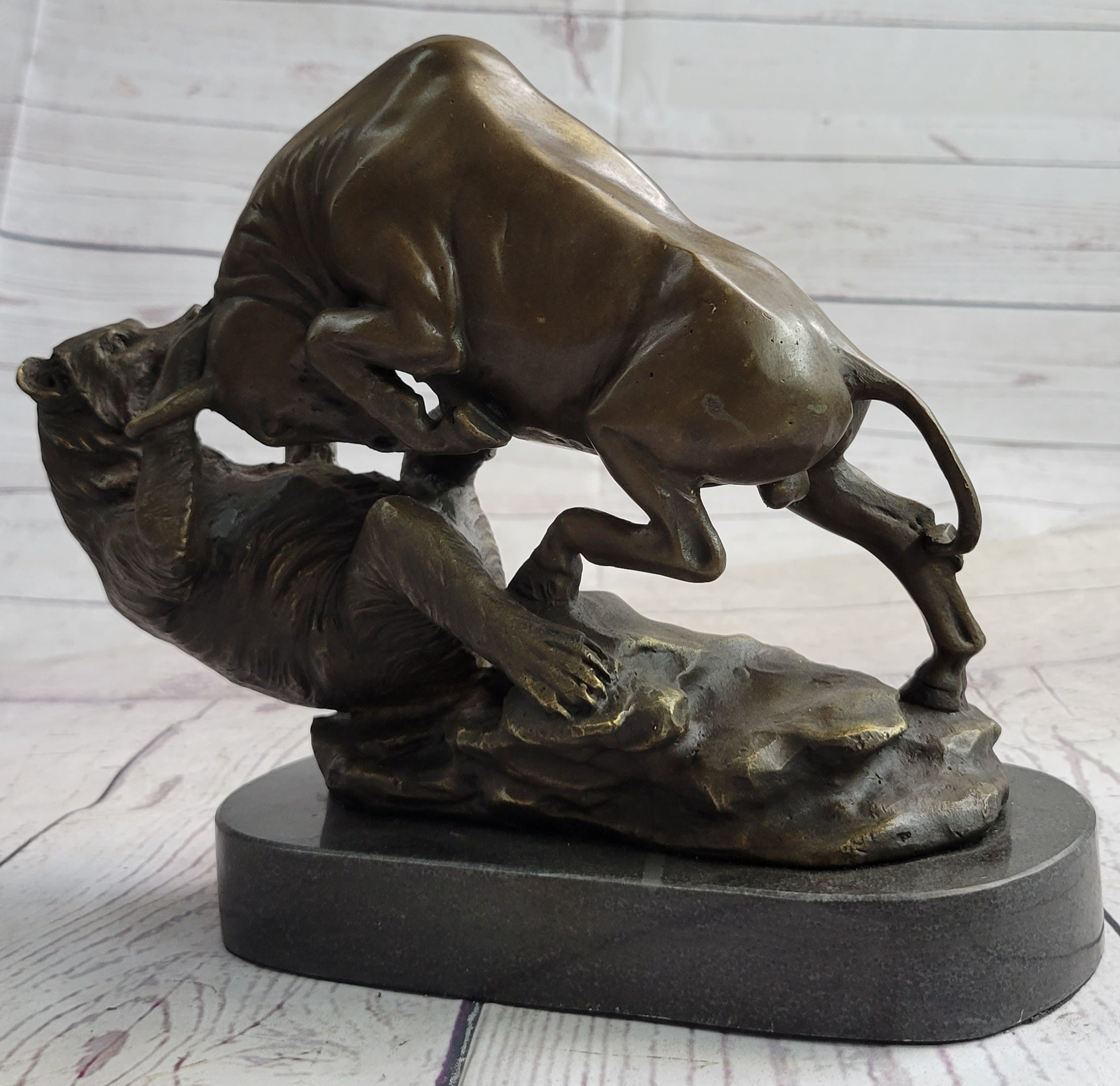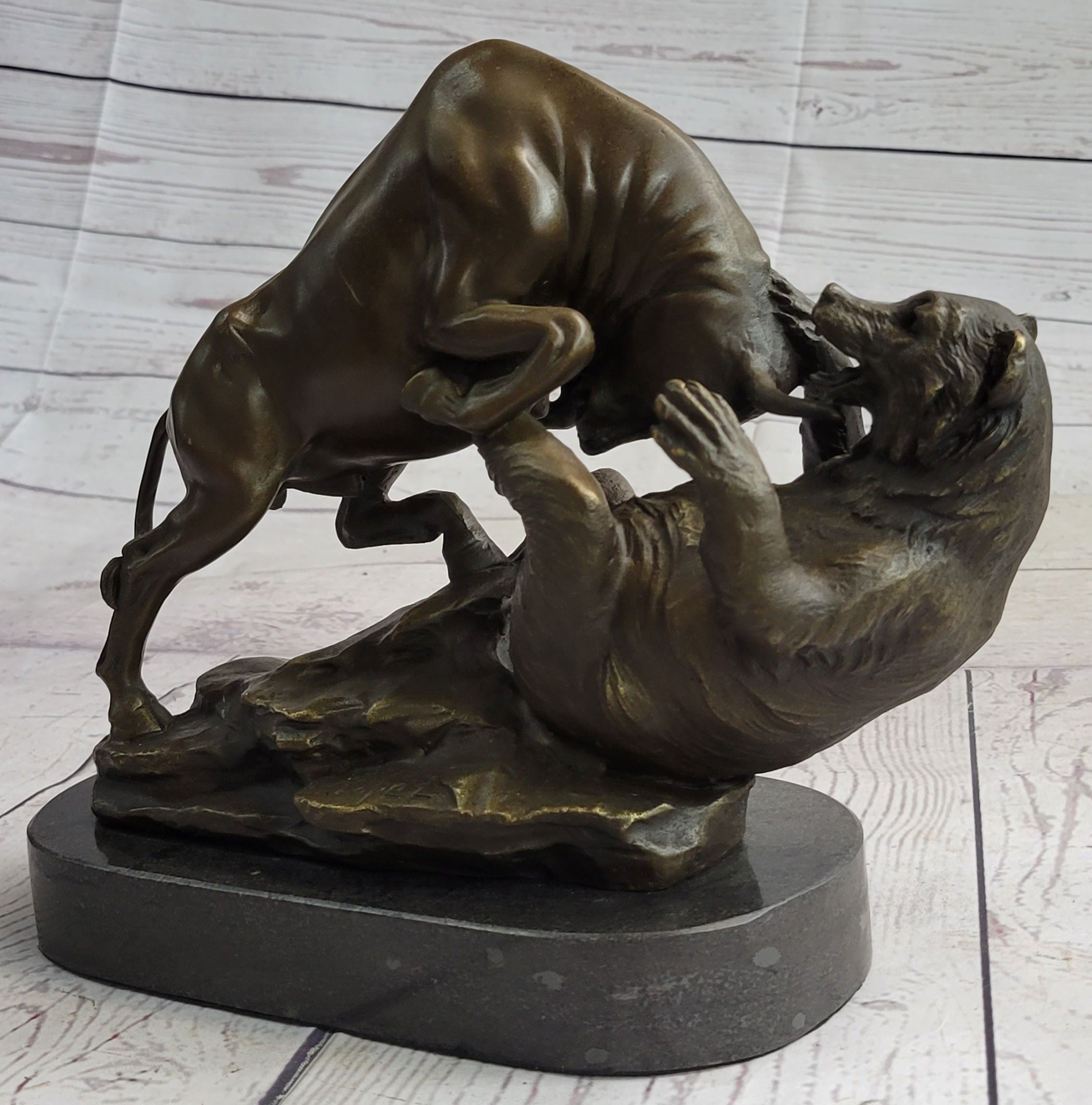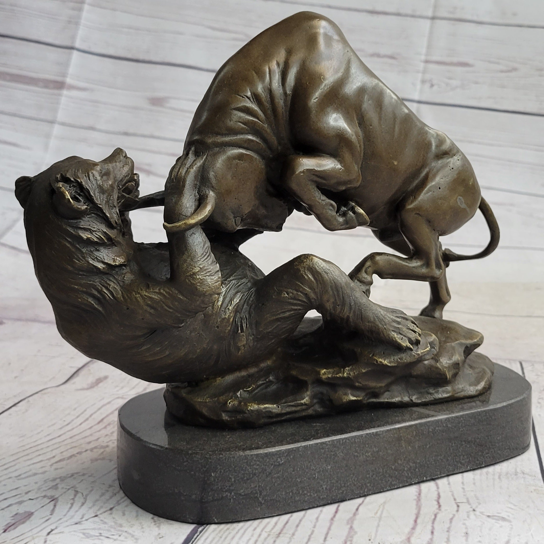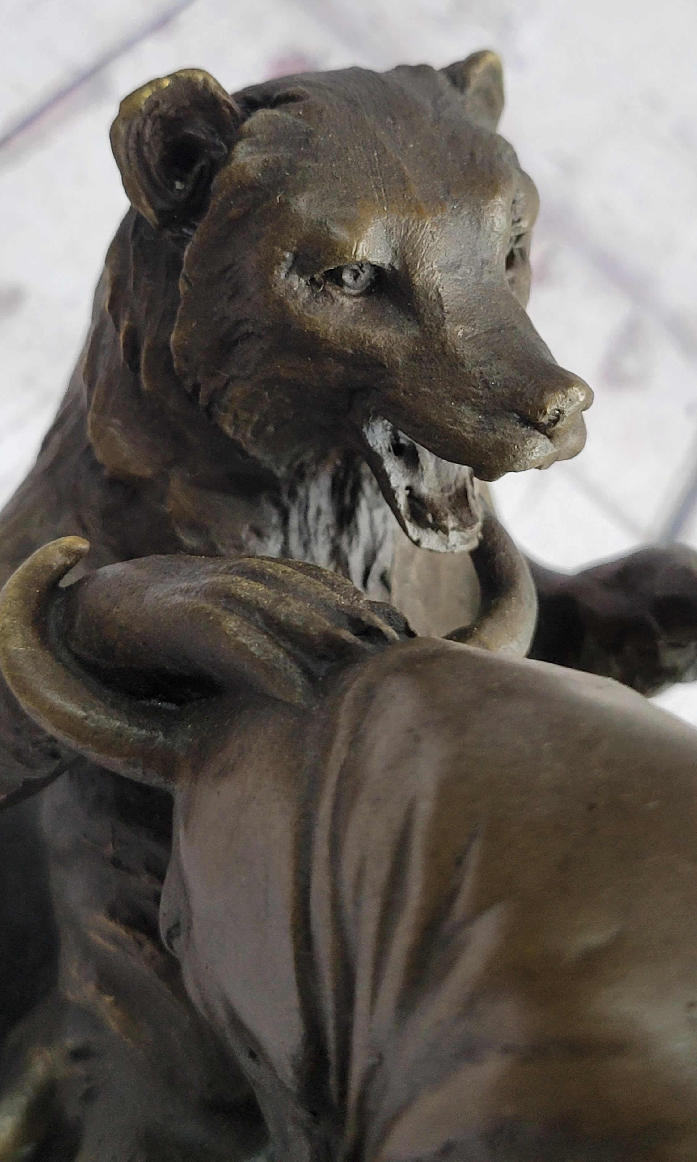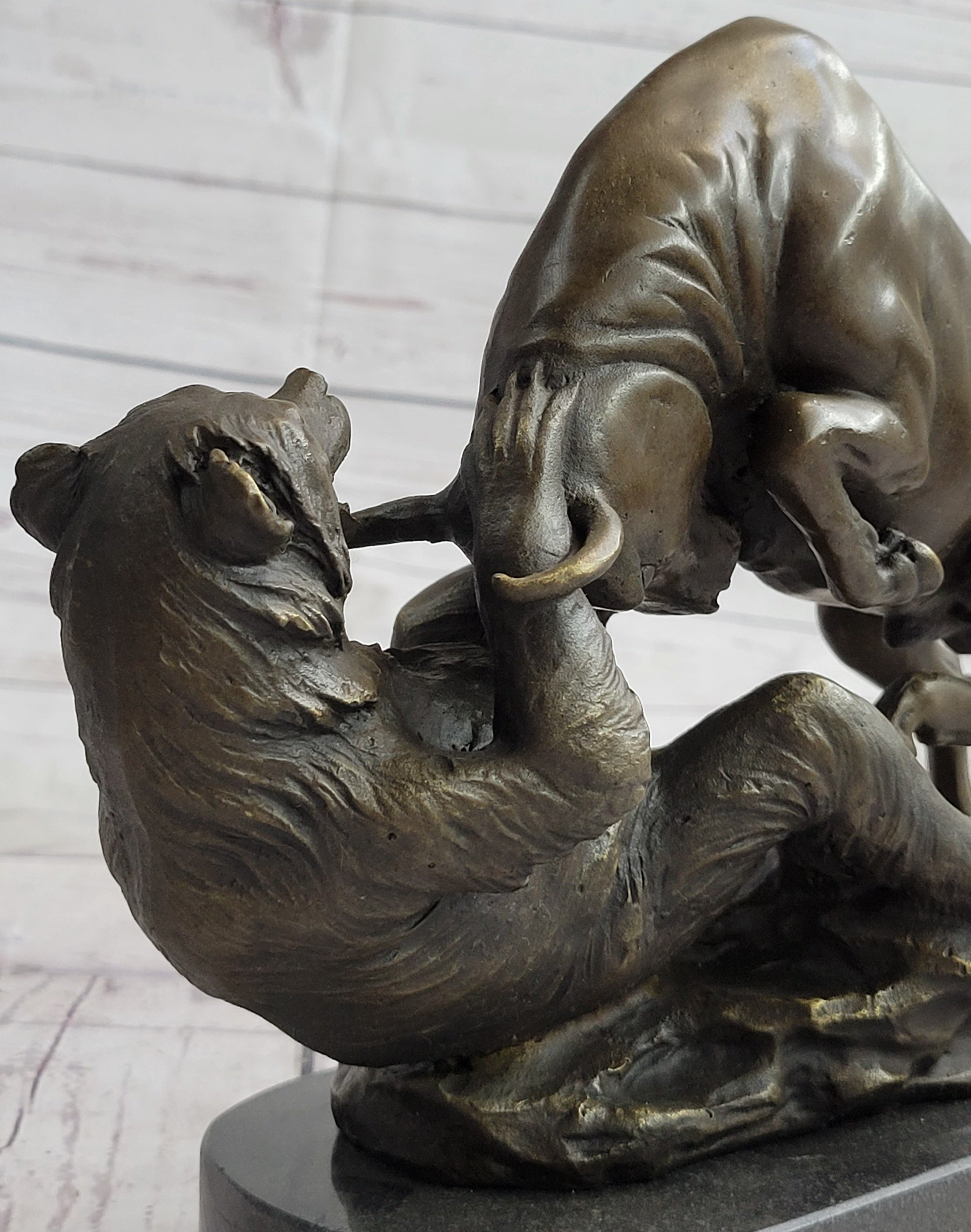 Wall Street Bull vs Bear Market Bronze Metal Desktop Statue Sculpture 9" x 11"