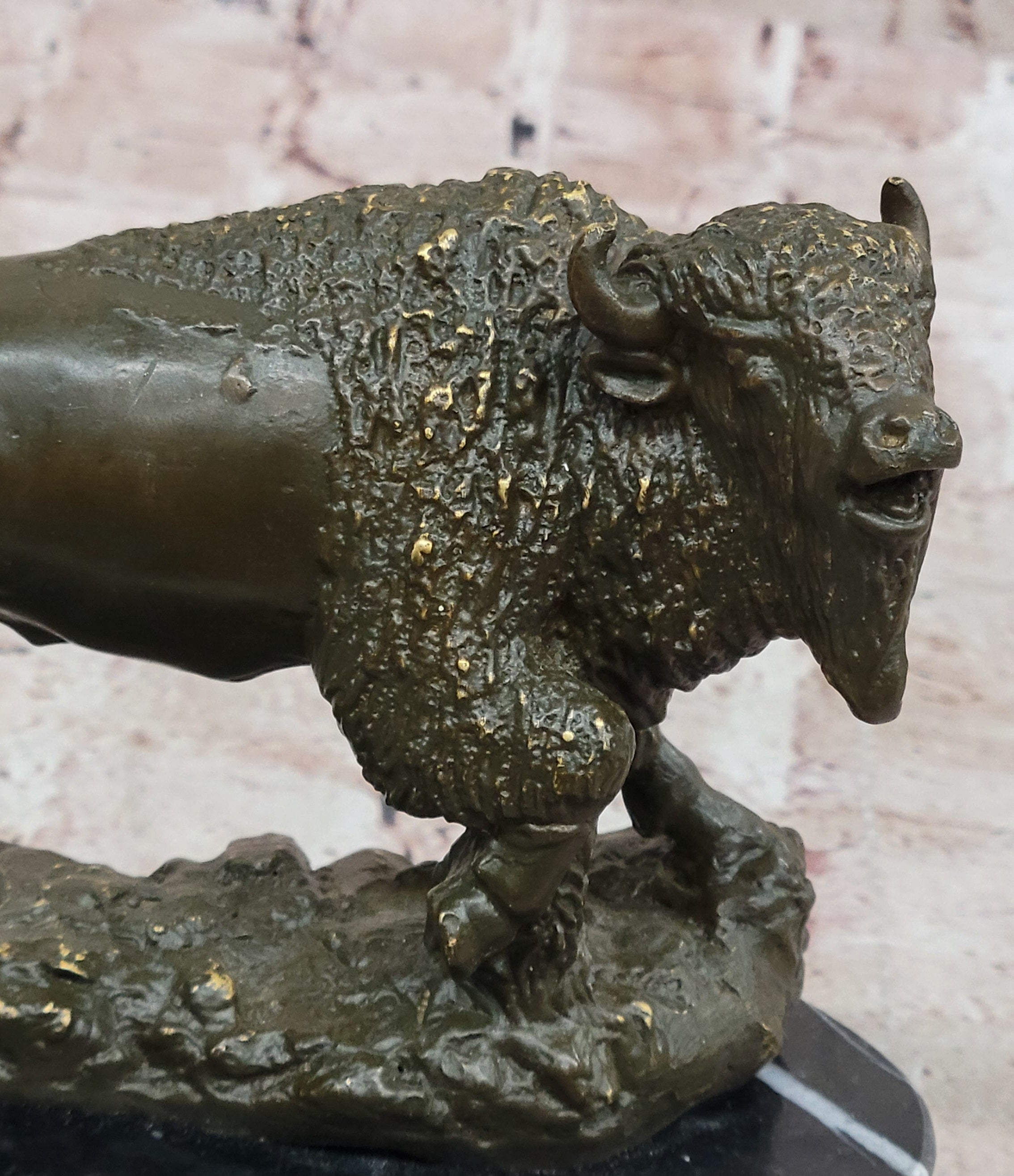 Western Bronze American Buffalo Bison Sculpture – Rustic Wildlife Decor
