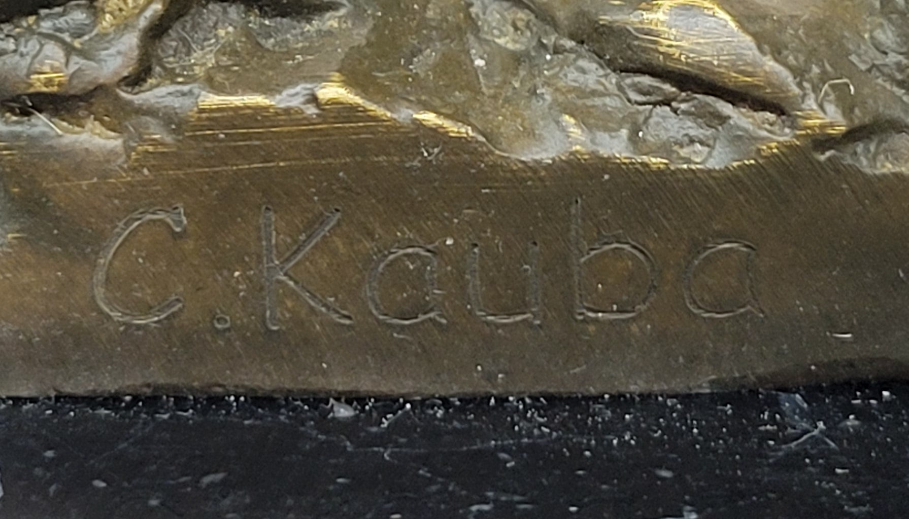 This genuine bronze sculpture by Carl Kauba powerfully captures the raw majesty of the American buffalo, or bison, in a lifelike and commanding stance. Known for his masterful depictions of the American West, Kauba brings this iconic creature to life with striking realism and a deep respect for its strength and presence in the wild. The sculpture evokes a sense of movement and dignity, honoring the bison’s enduring spirit and cultural significance.