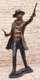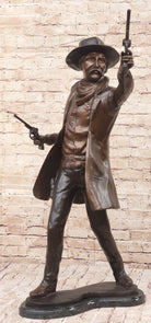 Wyatt Earp Gunslinger Wild West Sherriff Shooting Dual Pistols - Bronze Sculpture Statue Western