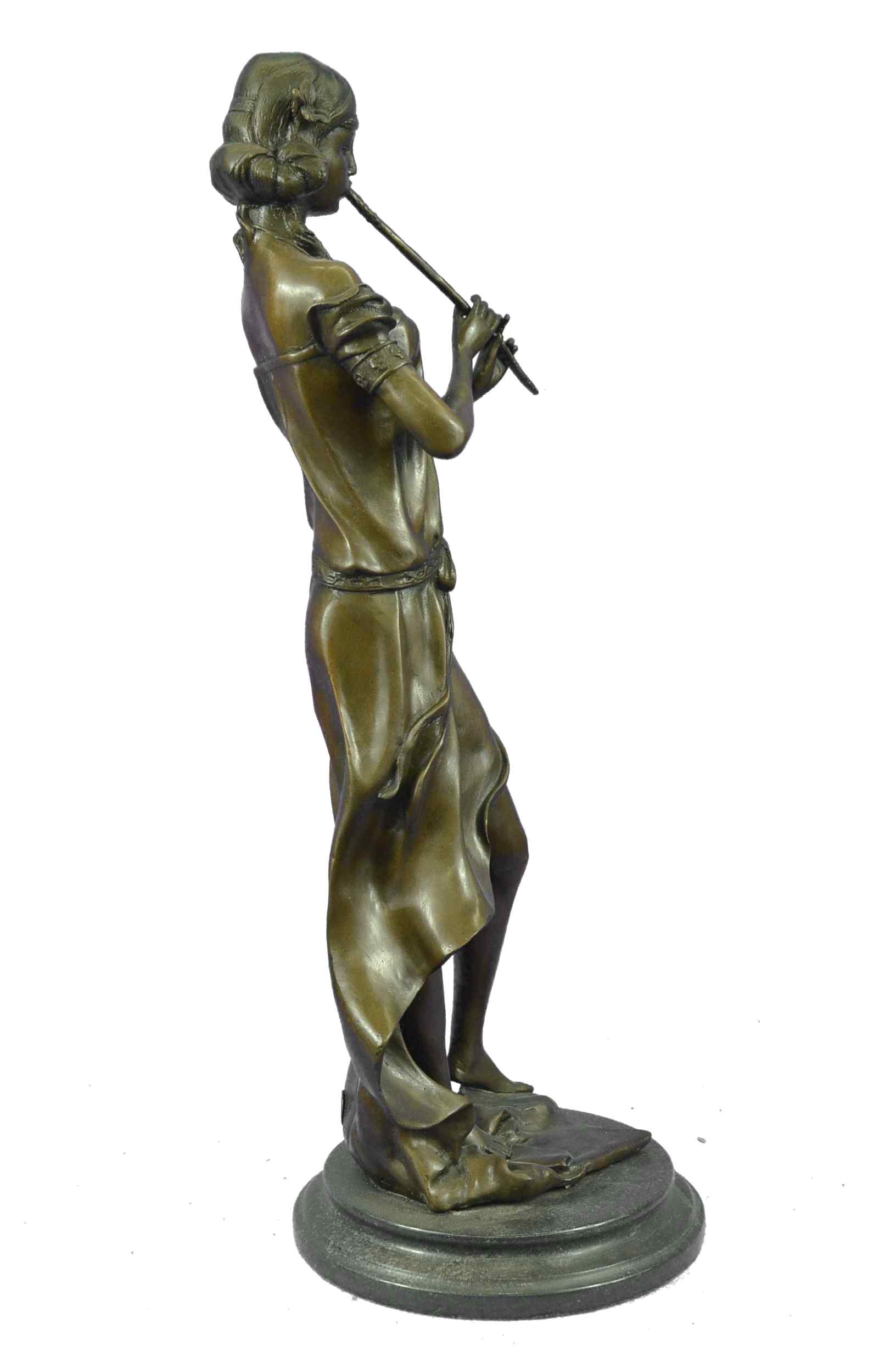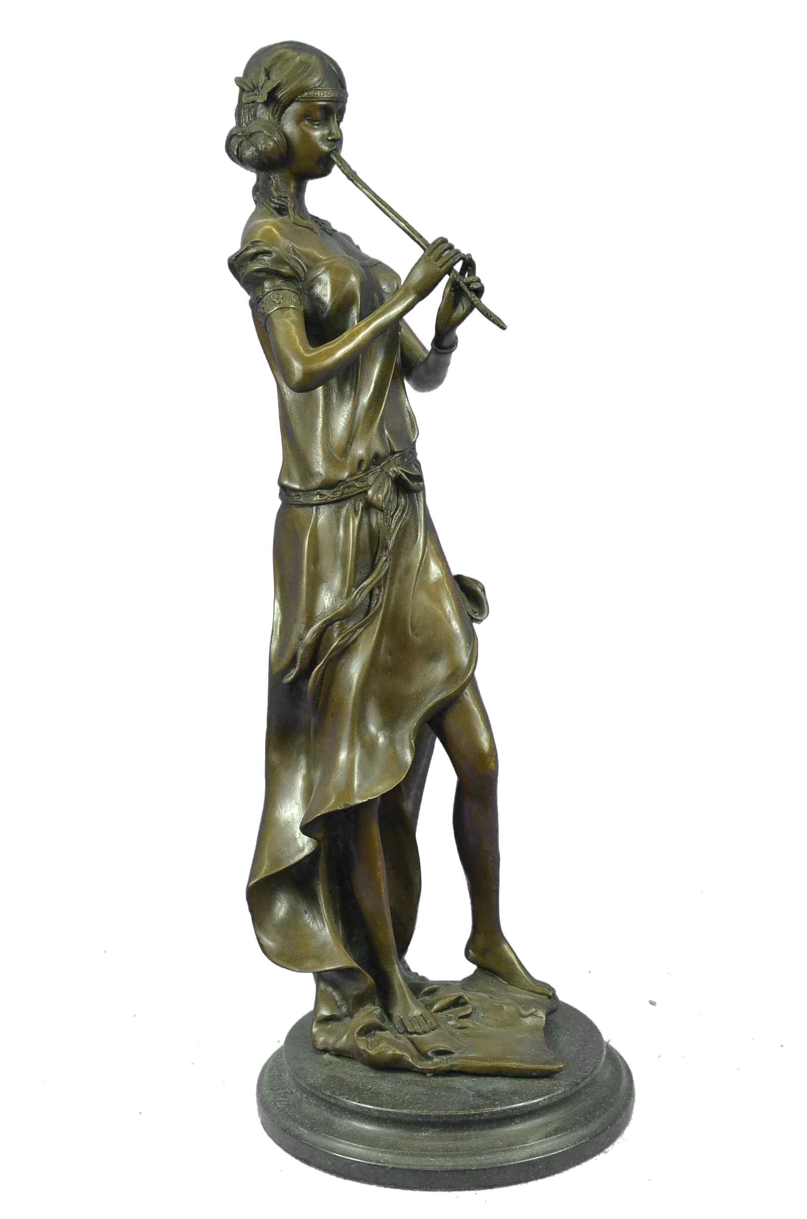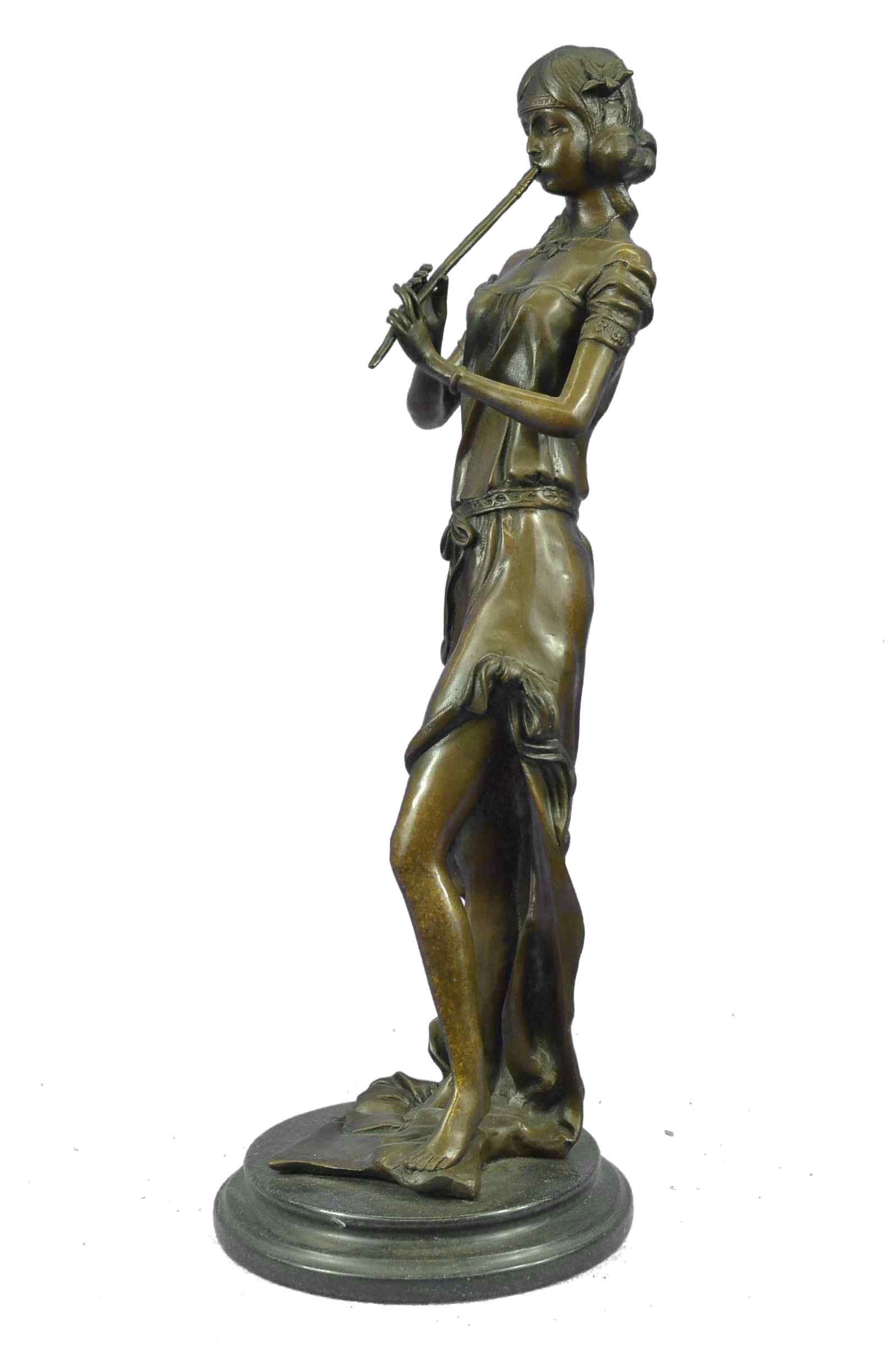 Young Girl Playing Flute Bronze Sculpture Figurine Art Nouveau Home Decor Large