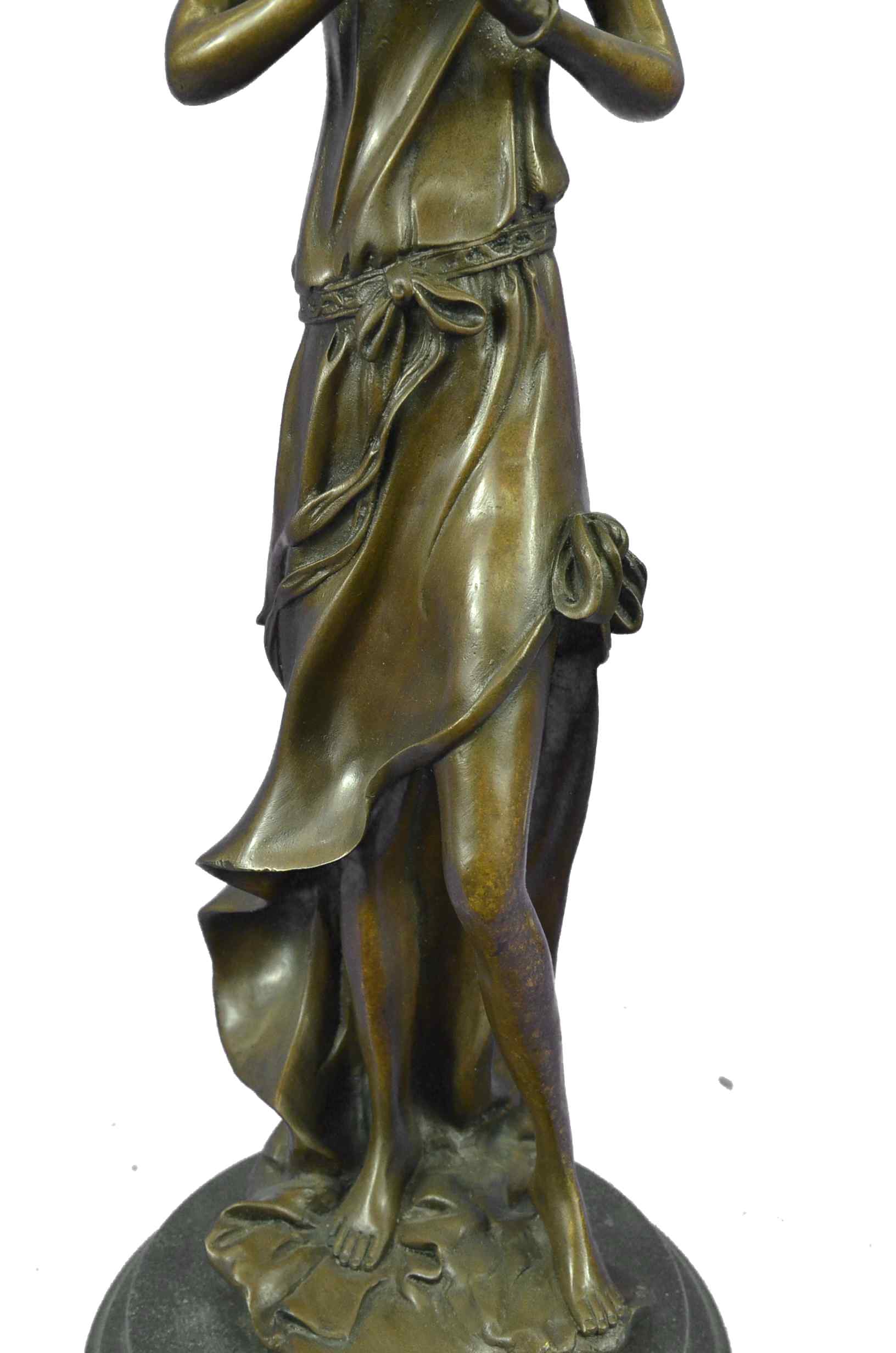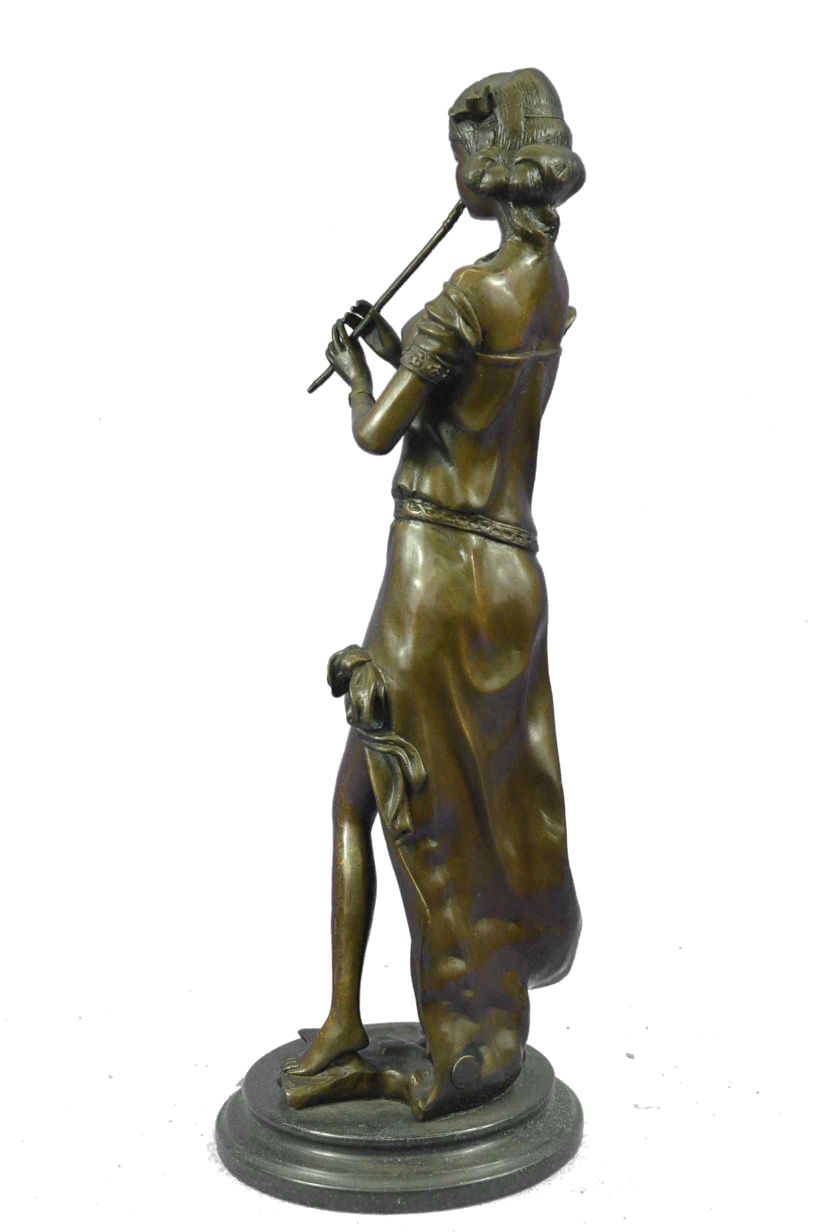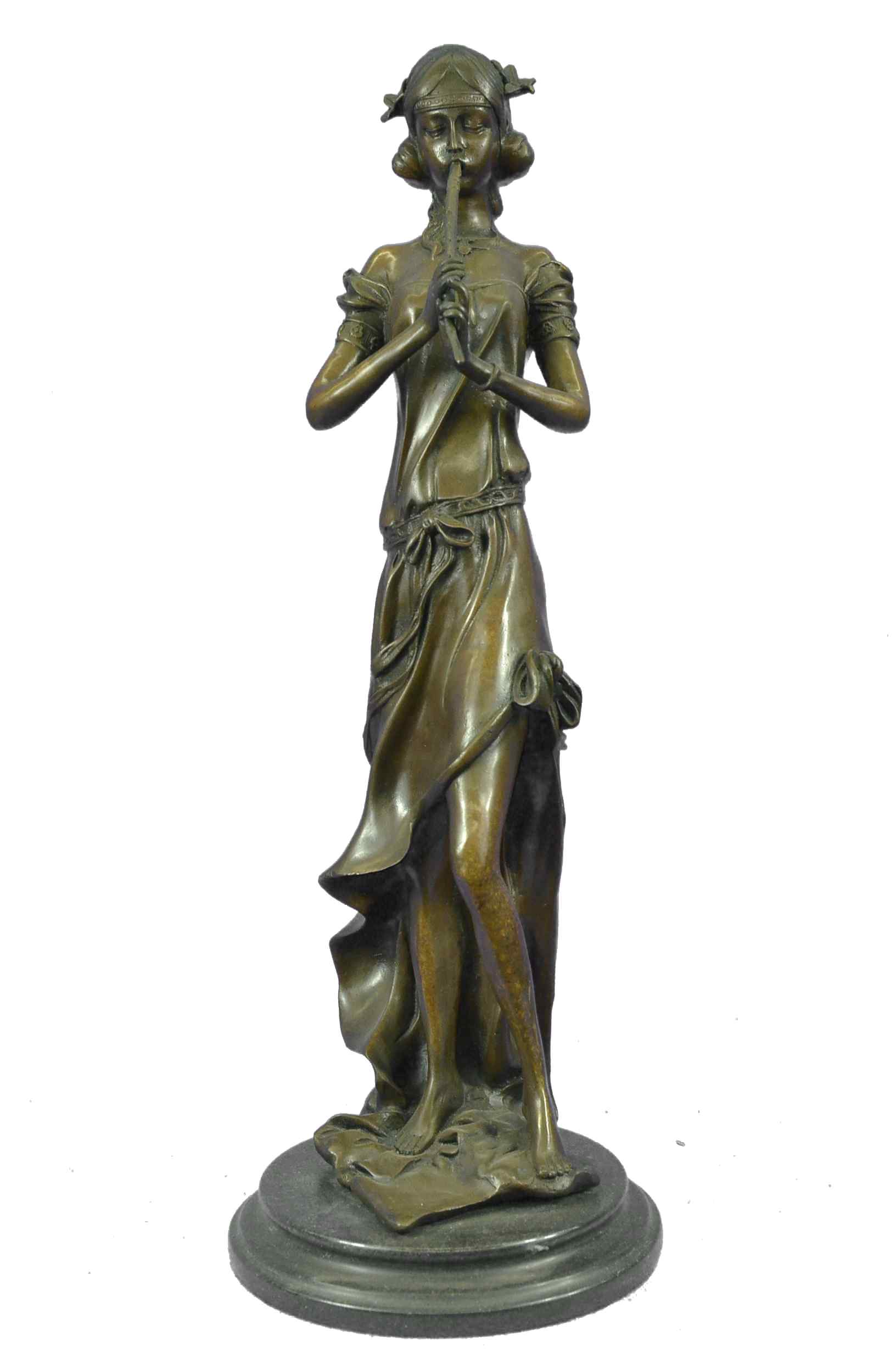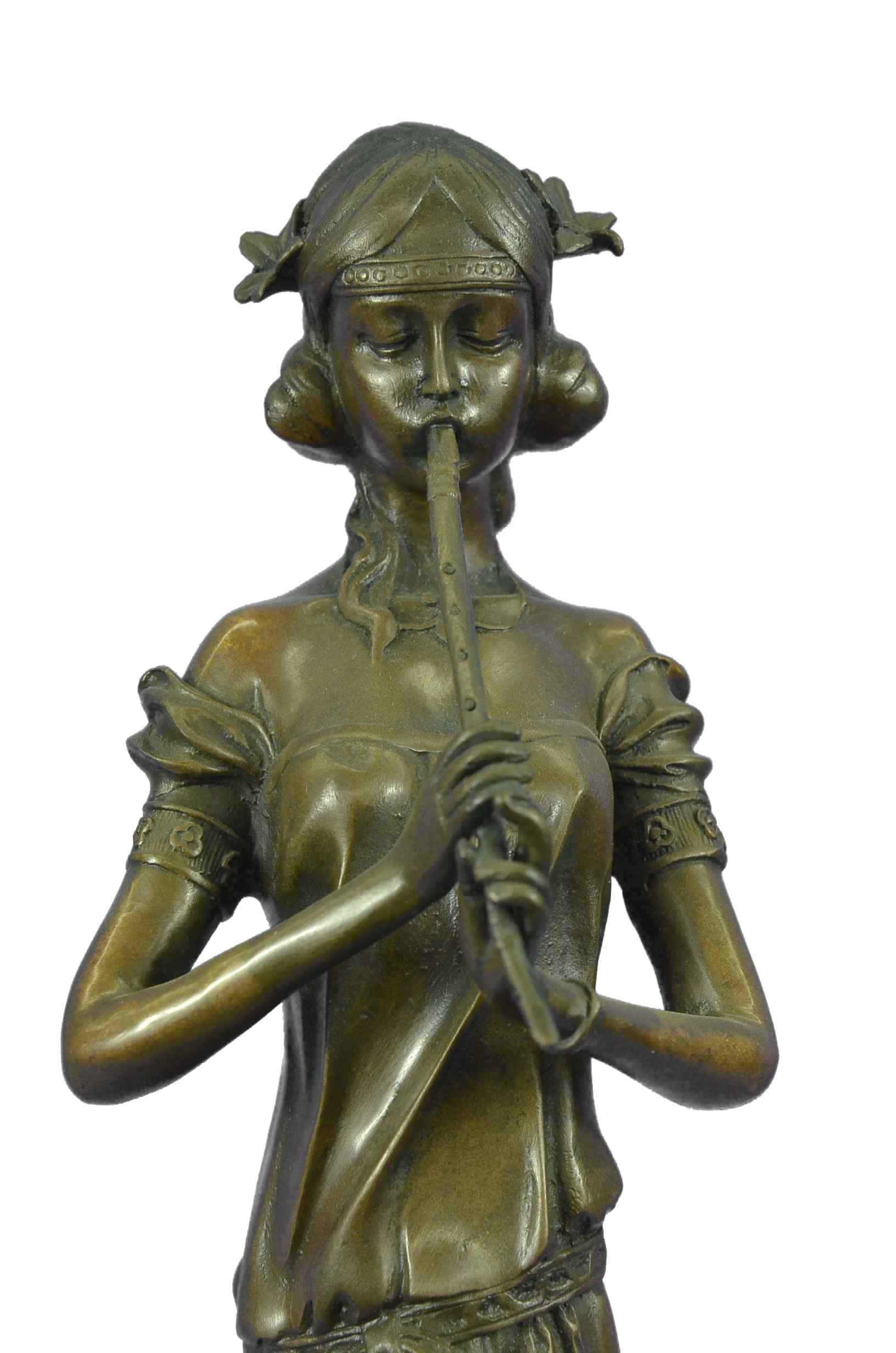 Young Girl Playing Flute Bronze Sculpture Figurine Art Nouveau Home Decor Large