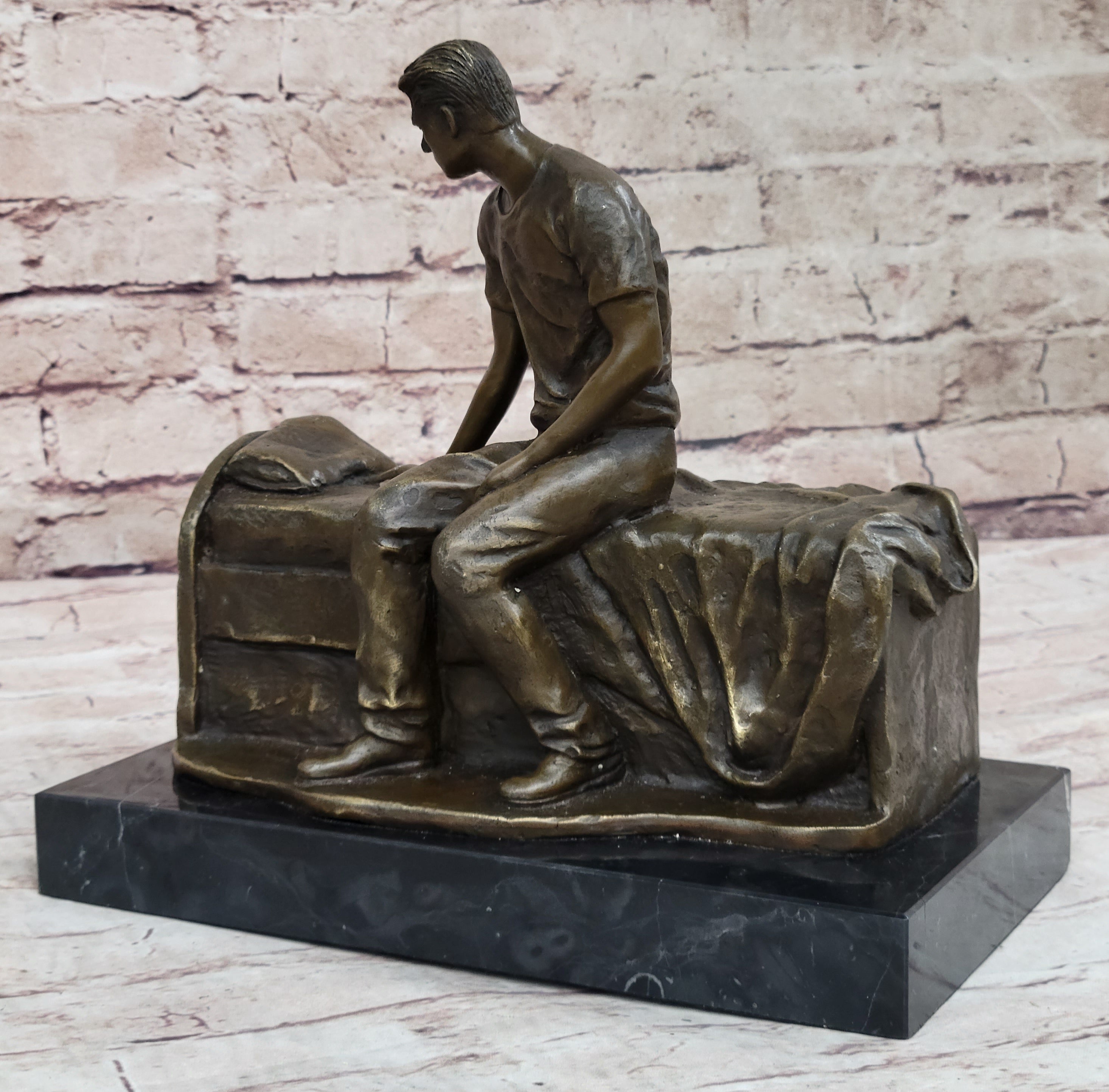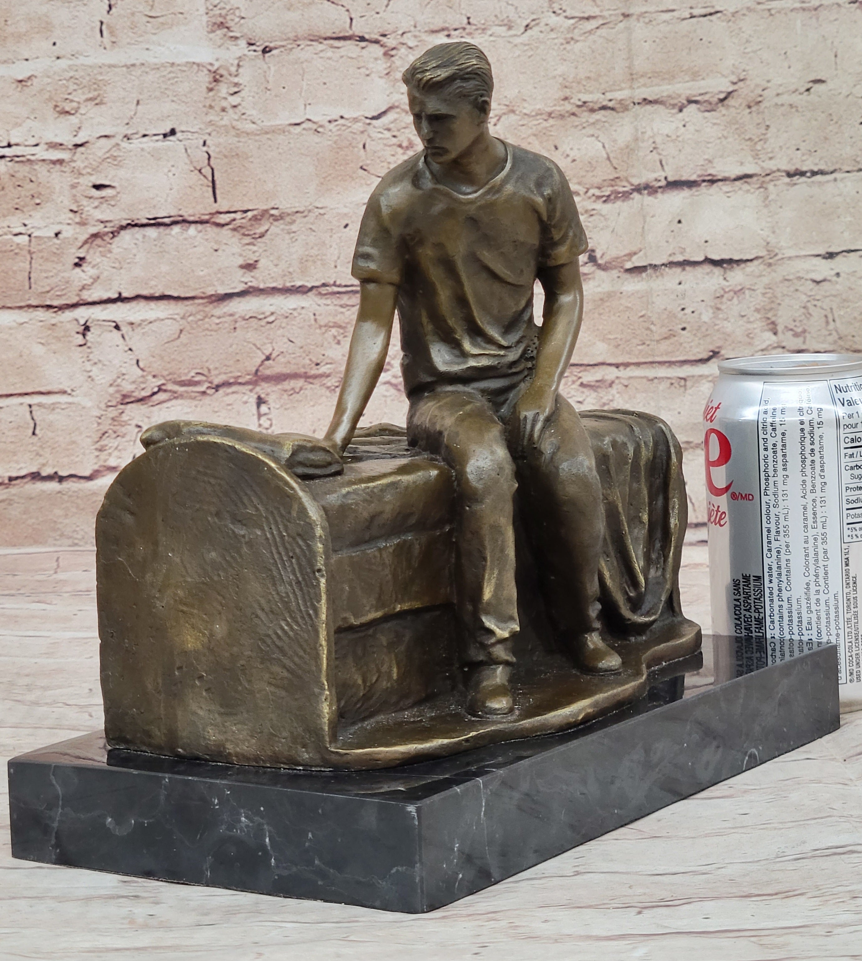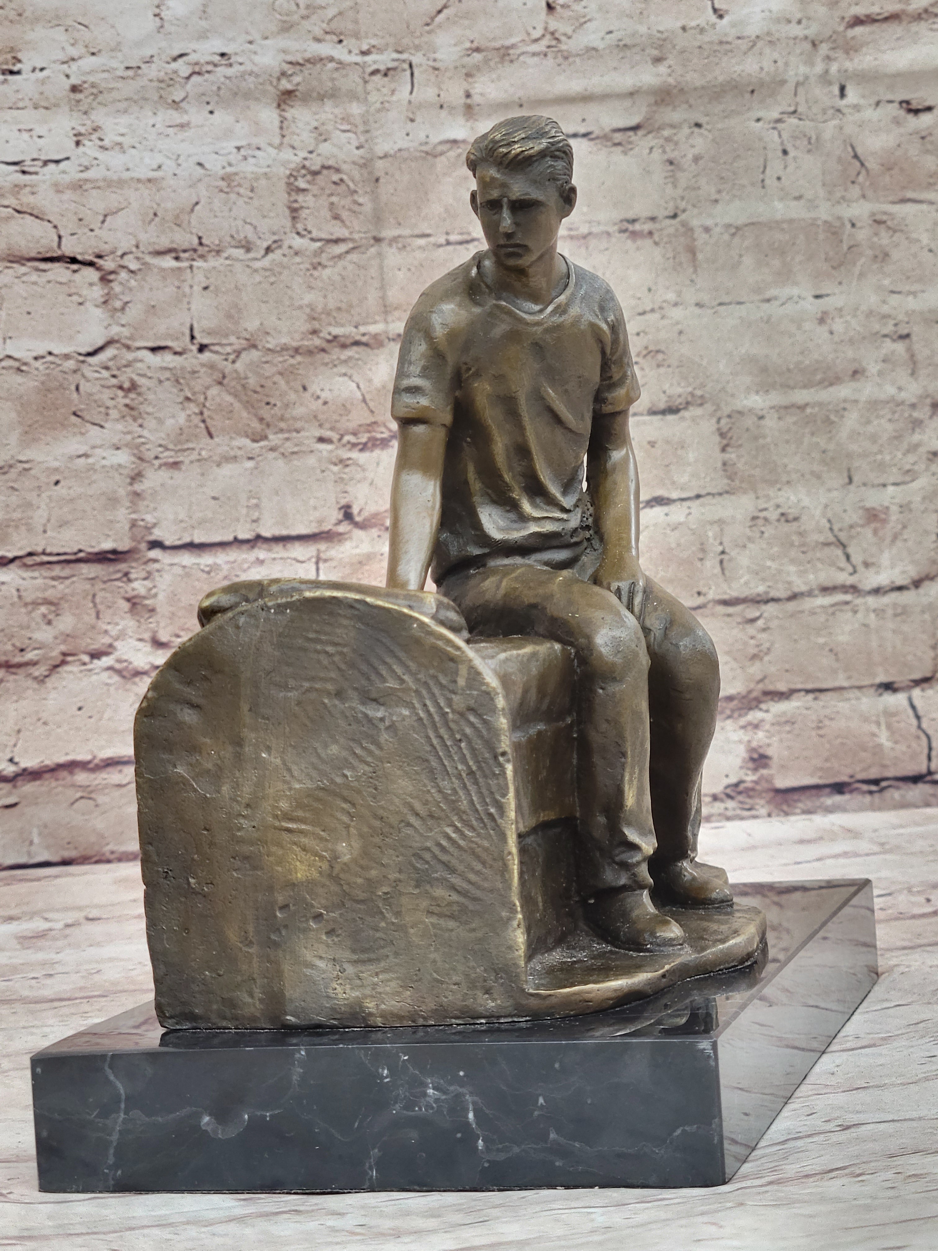 Young Man Deep in Thought on Bench Genuine Bronze Sculpture Art by Aldo Vitaleh