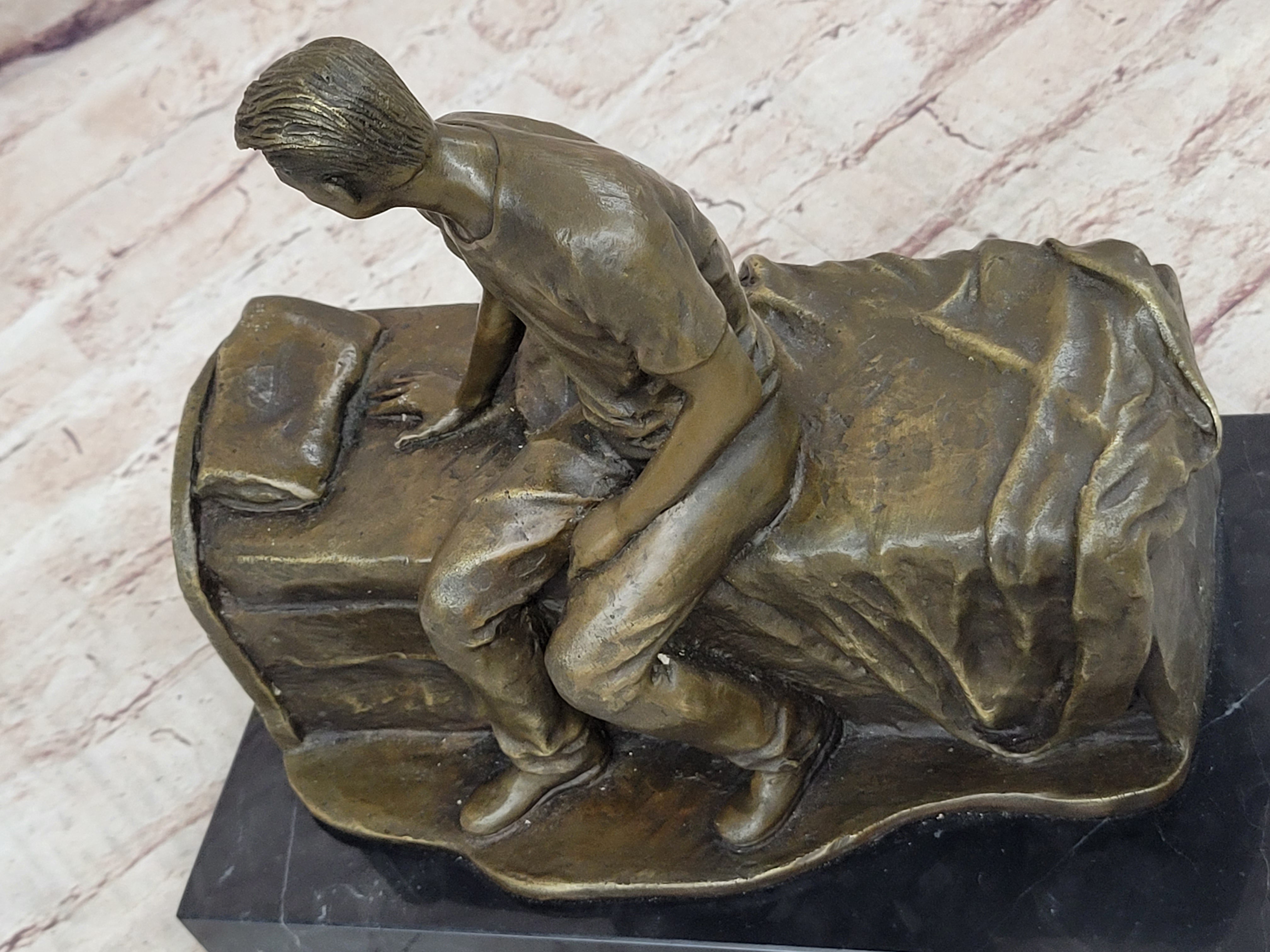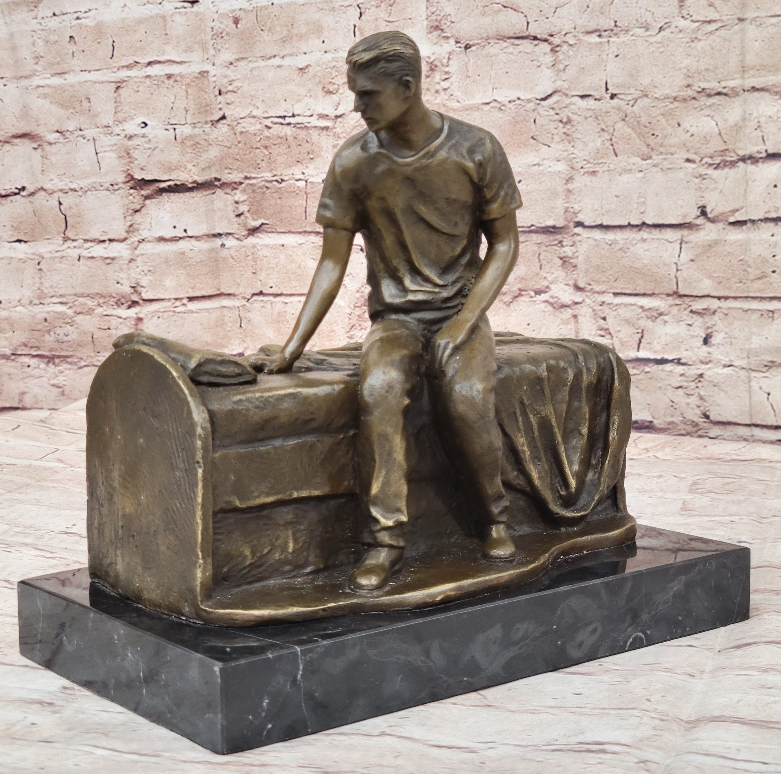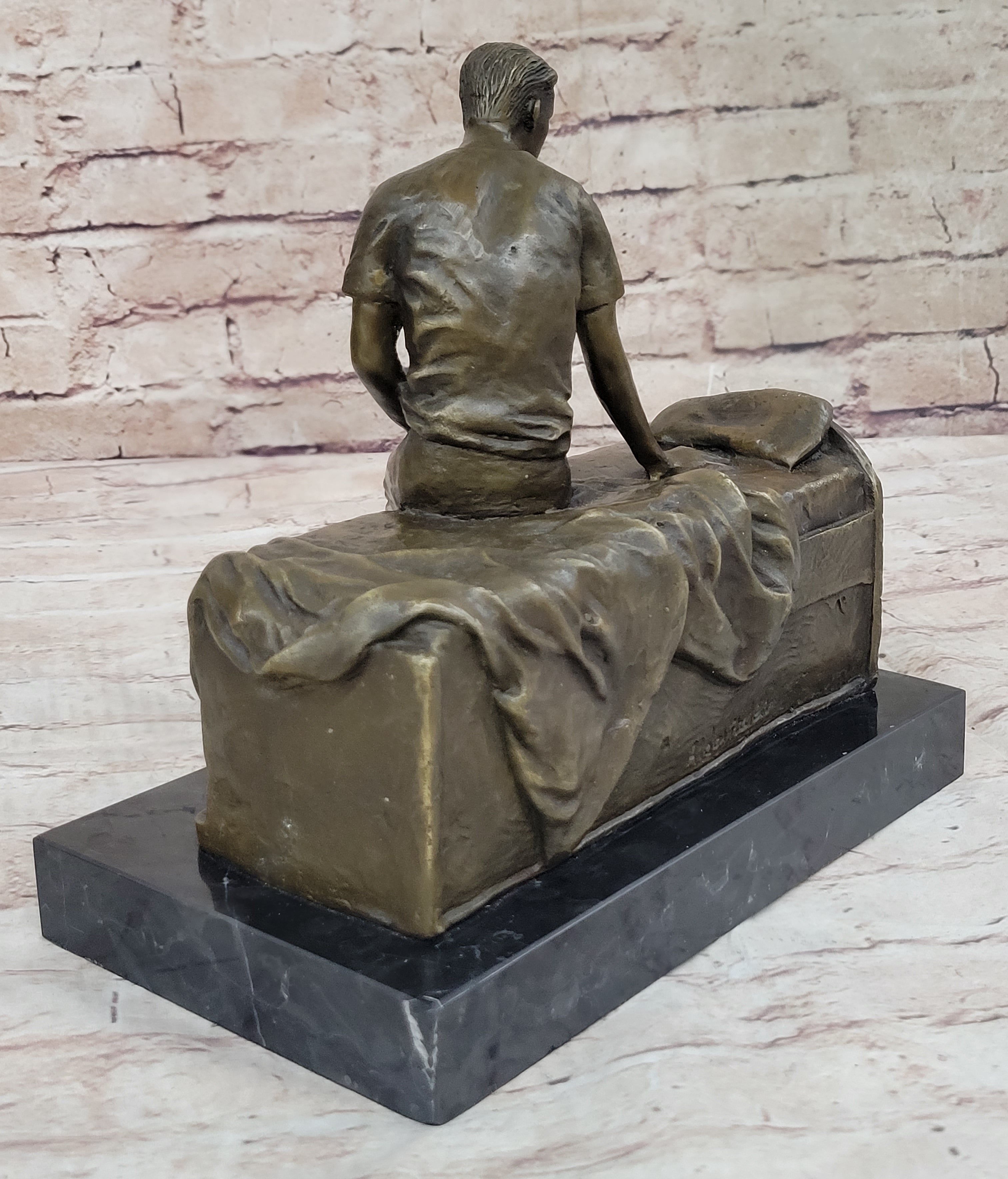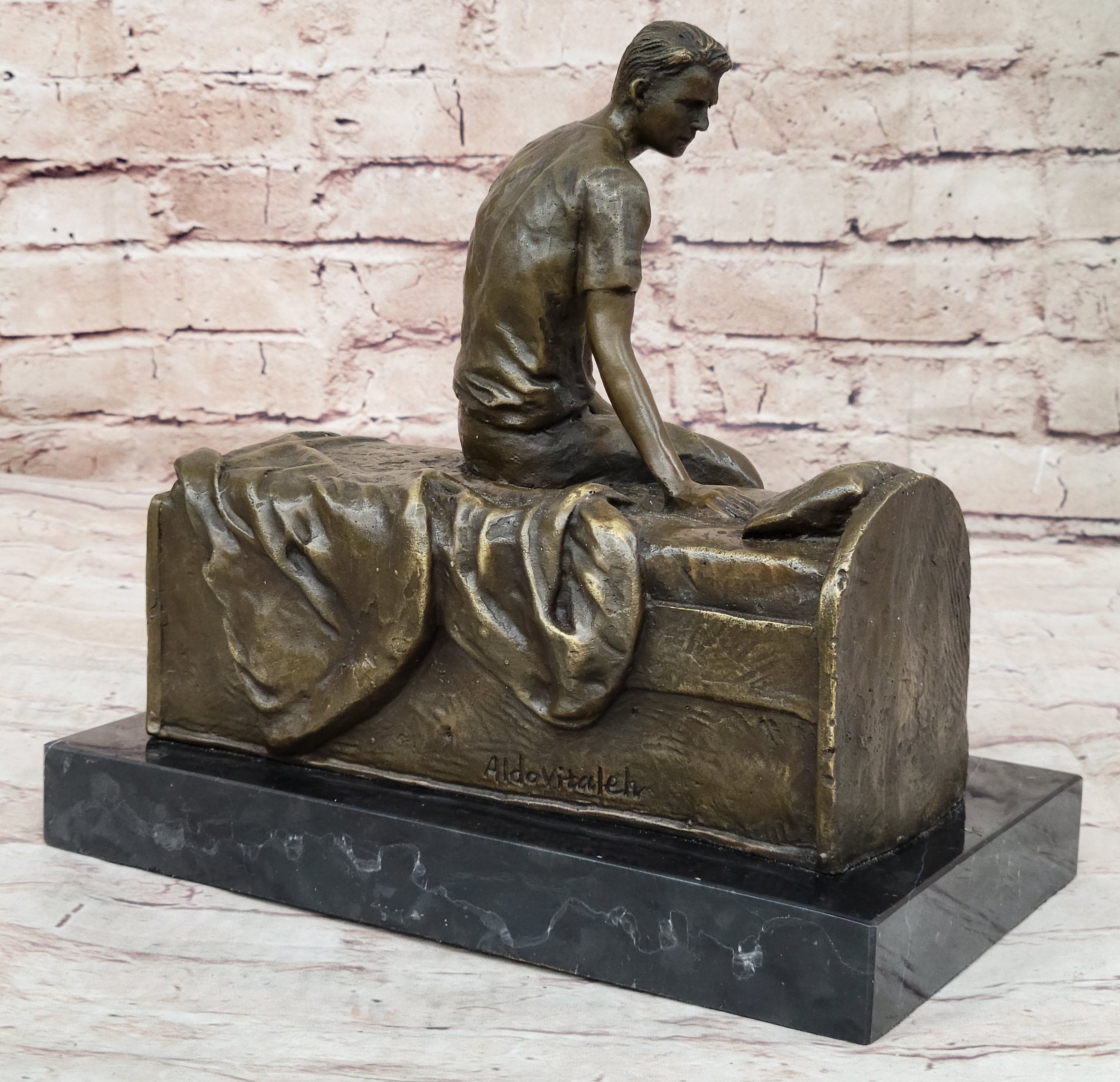 Young Man Deep in Thought on Bench Genuine Bronze Sculpture Art by Aldo Vitaleh