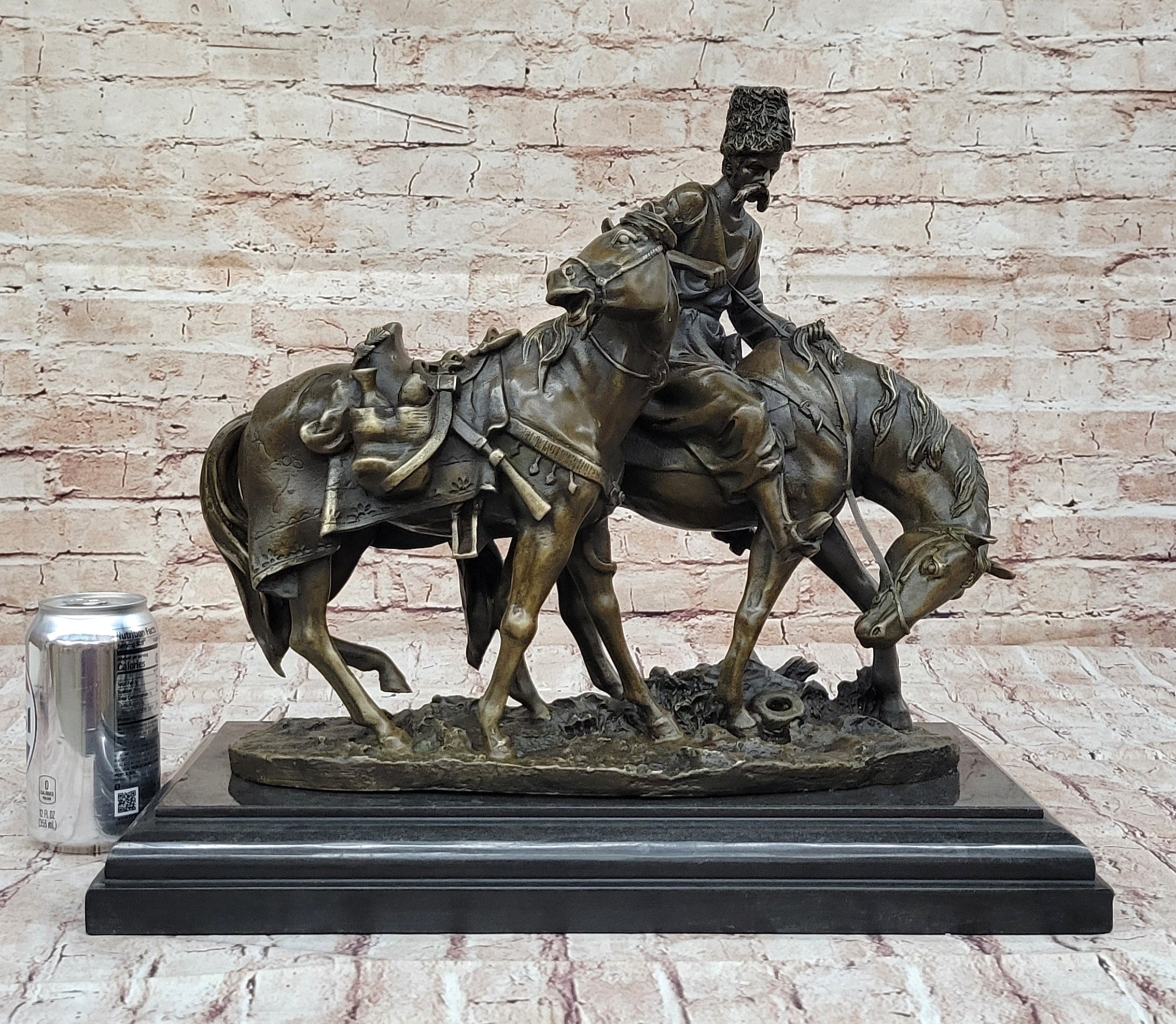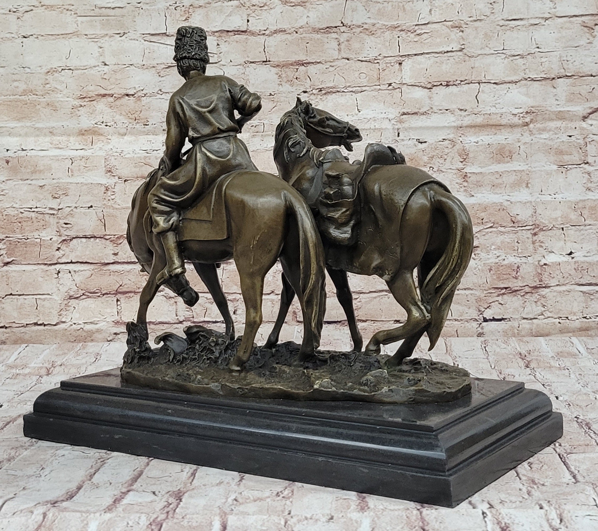 Embrace the spirit of adventure and honor the legacy of the Zaporozhian Cossacks with this remarkable bronze sculpture. Perfect as a collectible piece, home decor accent, or a thoughtful gift for history enthusiasts, it serves as a timeless reminder of the valor and bravery of these legendary warriors.Bronze Dimensions with Marble Base: Height 15.5" X Width 16.5"